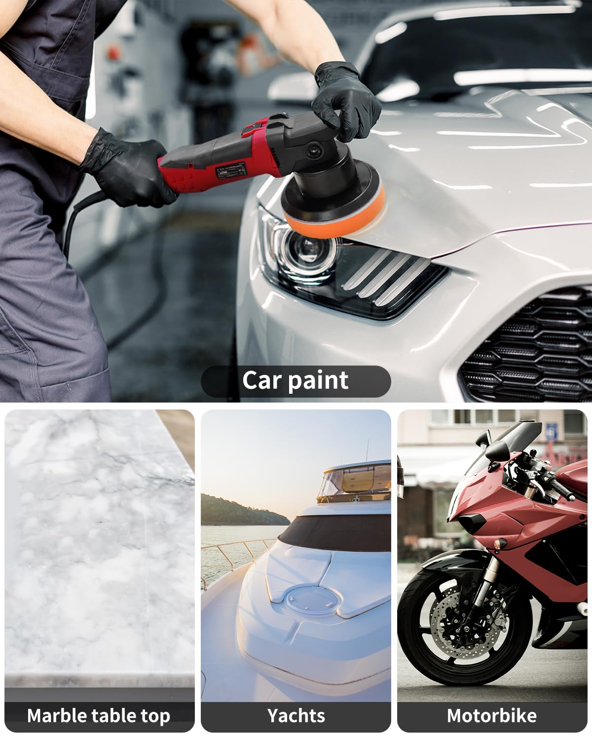 Wide Applications : The random orbital polisher is perfect for polishing, removing swirls, scratches, defect from all painted vehicles, so the vehicle shines. Further, you can also use the tool to sand wood or metal