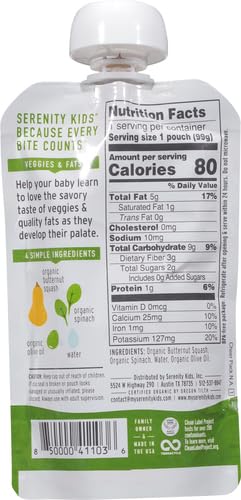 ORGANIC BUTTERNUT SQUASH & SPINACH: Contains 1 pouch of baby food puree made from organic butternut squash and spinach plus healthy fats from avocado oil.