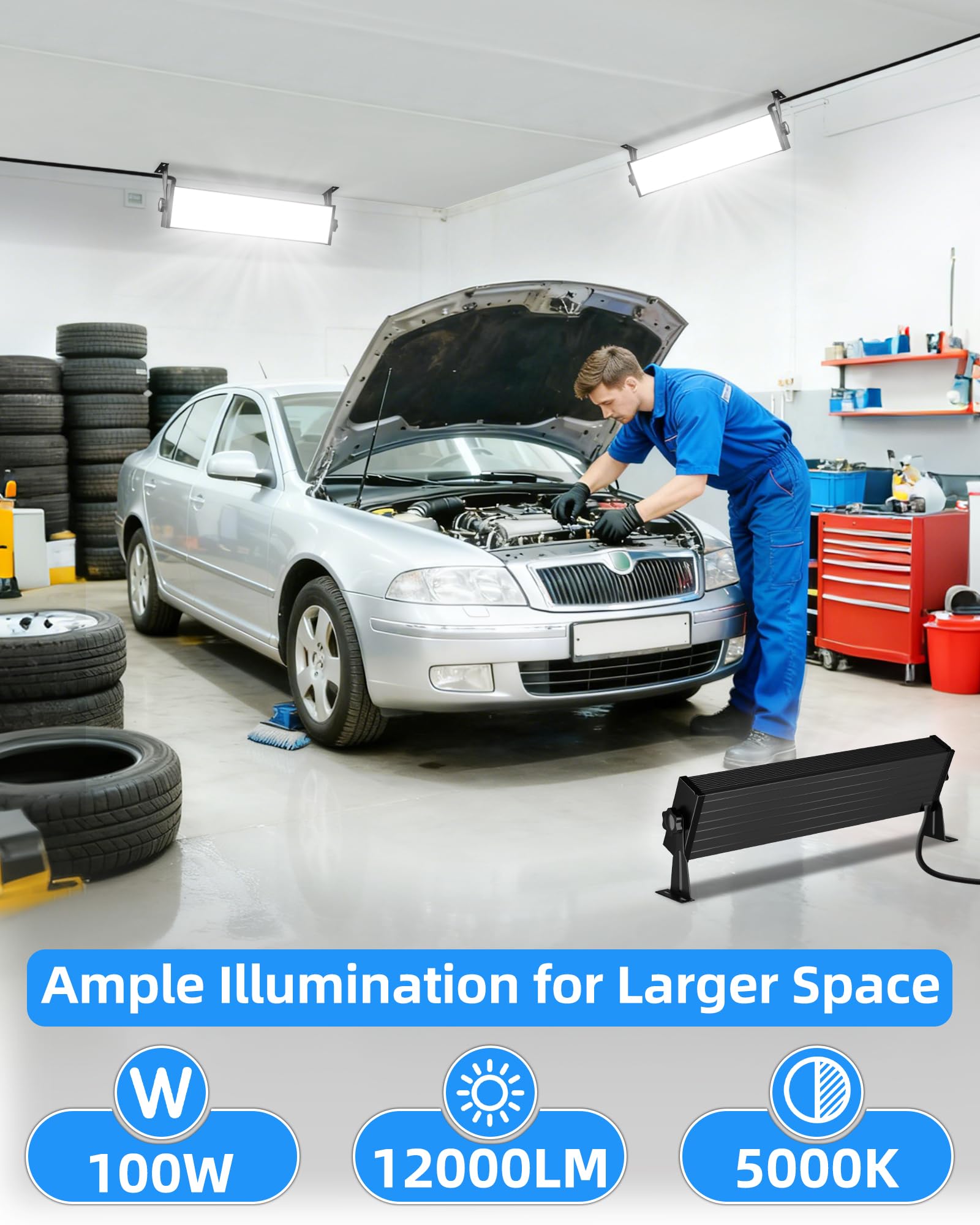 ULTRA BRIGHTER: The LED shop light utilizes 100 PCS LED beads, 12000LM output provide ample illumination for larger space. 5000K daylight white shop light covers an area of up to 1,200 sq. ft while saving over 85% on energy costs