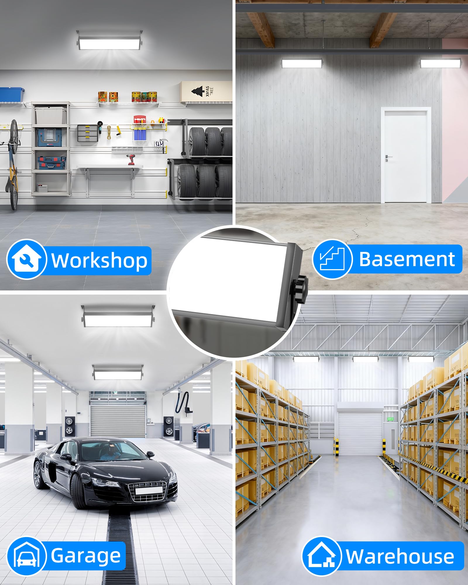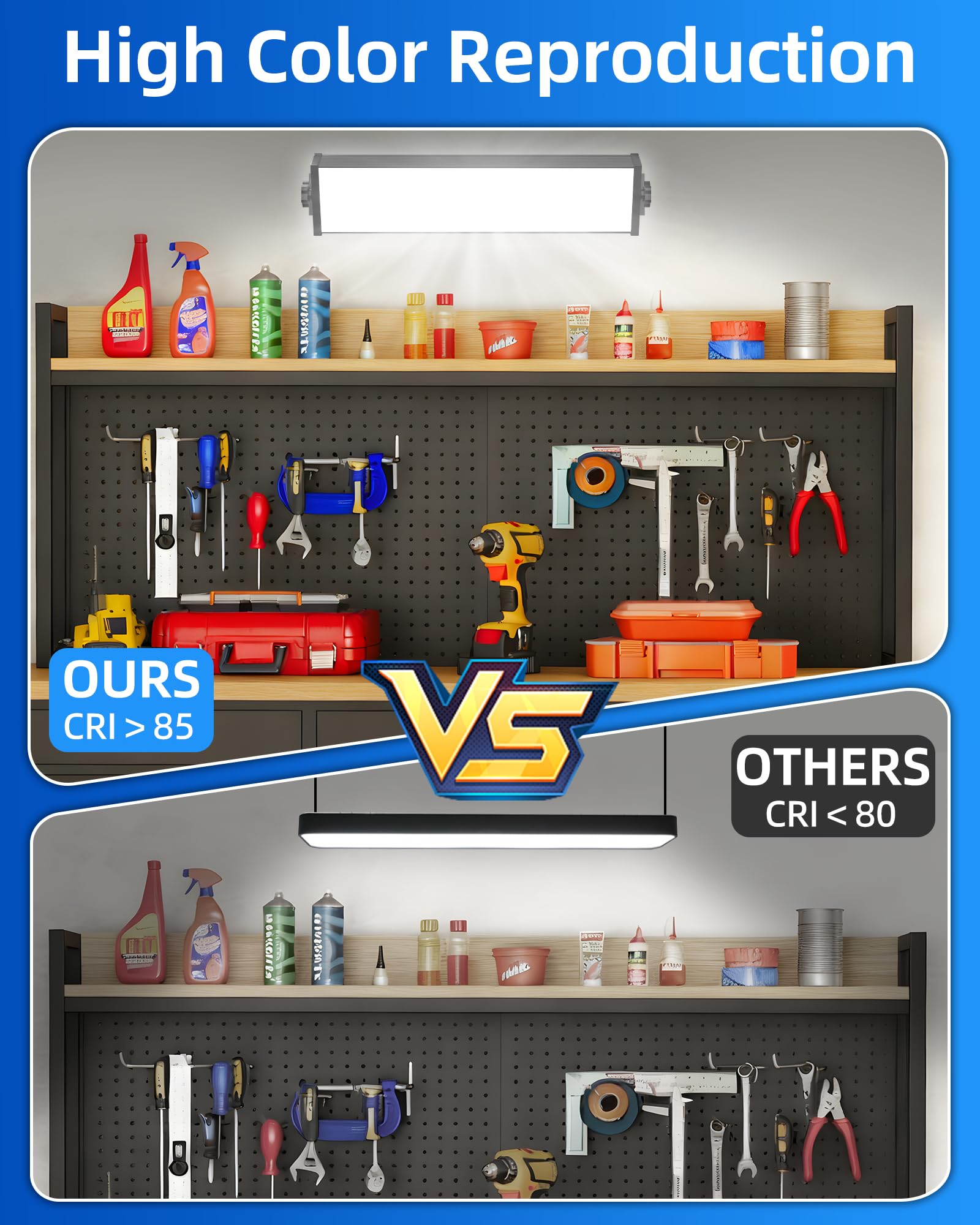 WIDE APPLICATIONS: The 100W LED shop light is sufficient for Garage, workshop, workbench, basement, carport, attic and more. CRI>85, try the light and makes a big difference detailing in the garage. Note: No Dimmable, No Linkable