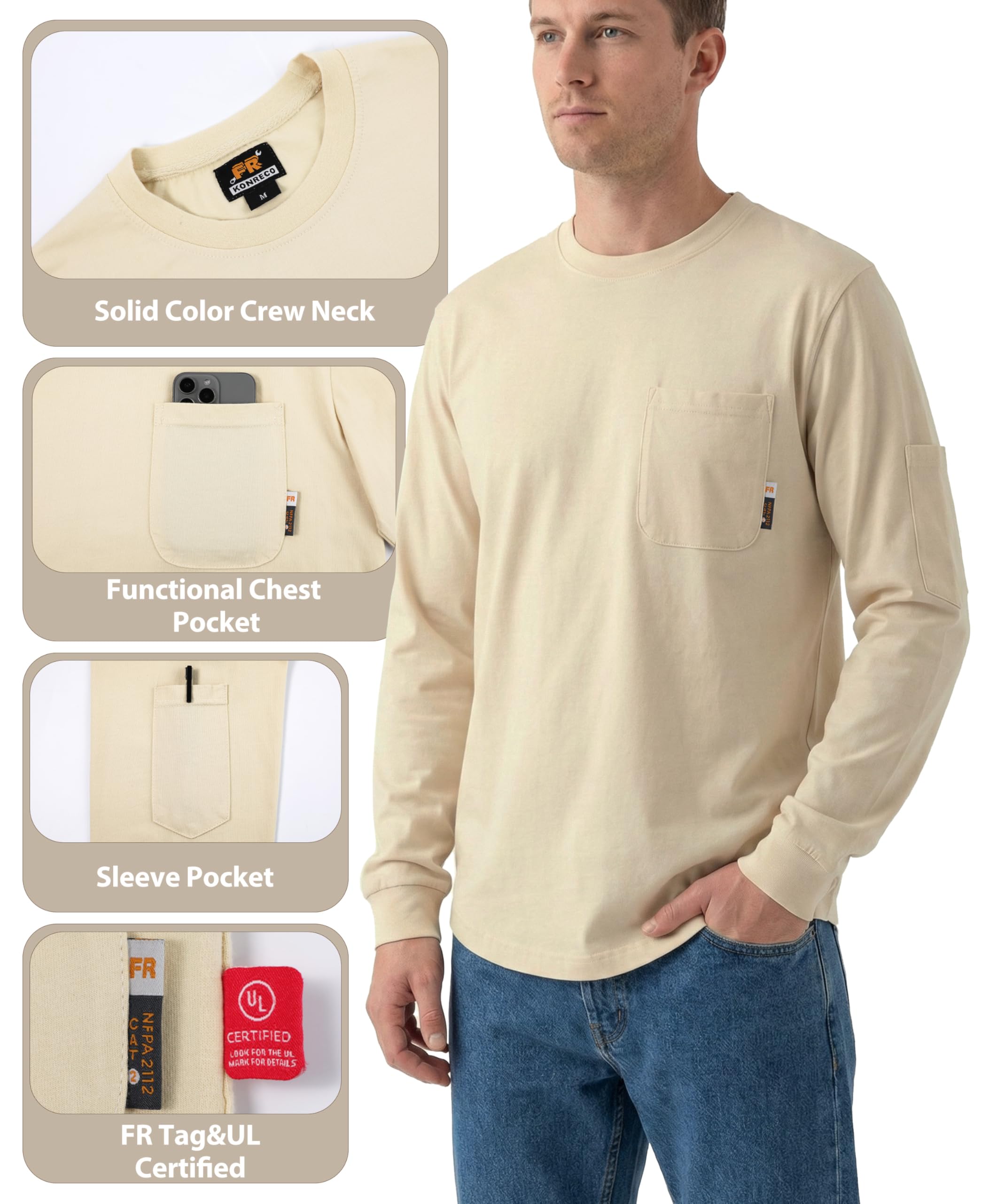 [Authoritative Certification]There is a FR tag on the pocket of the shirt and a UL tag on the inseam.The product will come with a sample of the shirt fabric,which you can use to test its FR properties with fire or to sew the shirts after minor damage.It is certified by UL to comply with ASTM1506,NFPA70E,and NFPA2112 standards.