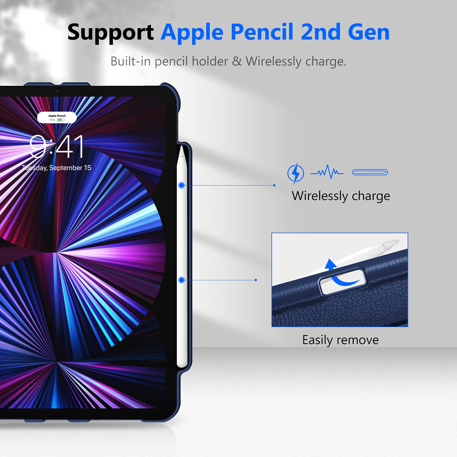 Built-in pencil holder, grab your 2nd gen pencil effortlessly whenever you want, easily to carry your iPad pencil with your device. (Pencil not included!)
