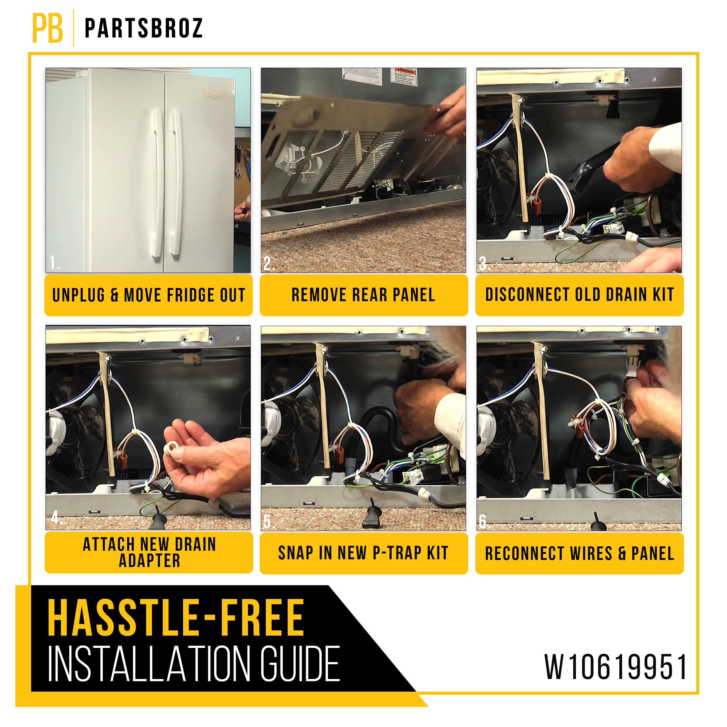 P-Trap Drain Tube Kit W10619951 is an exact replacement for W10619951, AP5780744, W10309238, W10344402, 2887289, PS8691807, W10210987, W10210988, W10344401, W10585186, W10588598, W10604169, W10622098, and W10622099.
