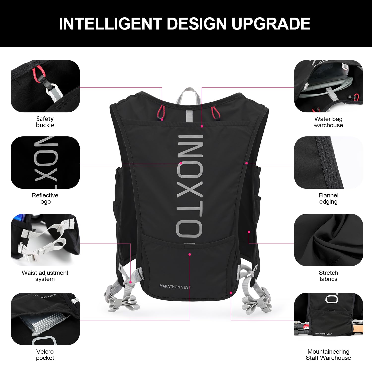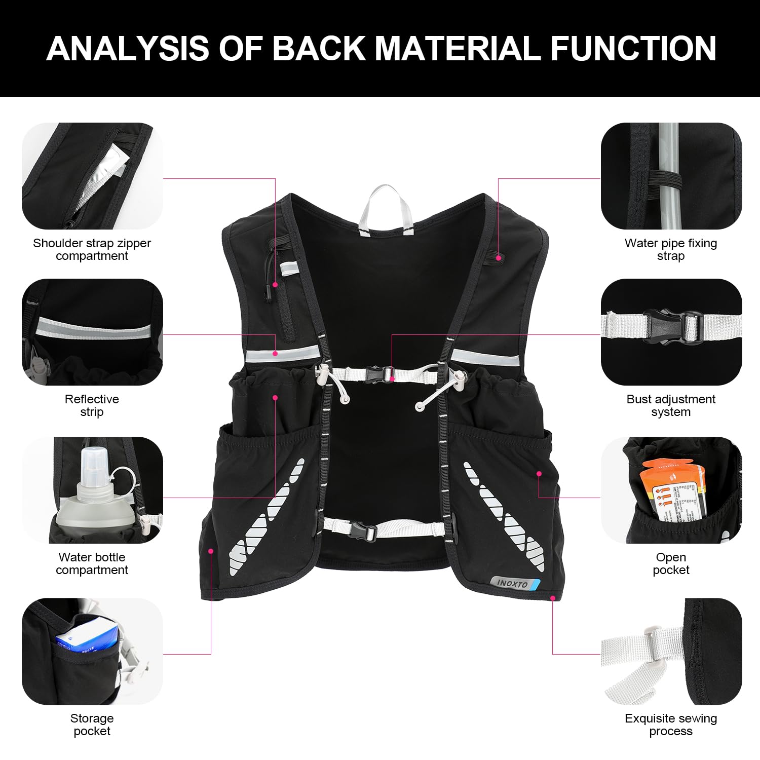 ❤ 【Ultra-lightweight design】 High-quality nylon material and ultra-lightweight design make it more comfortable to drive. The INOXTO Sport Backpack weighs only 140 grams and can hold 1.5 liters in the main compartment. In addition, the left and right belts have pockets for storing 250 ml PET bottles. Next to the main pocket, there is a pocket for storing mobile phones and items, so you can jog while listening to music!