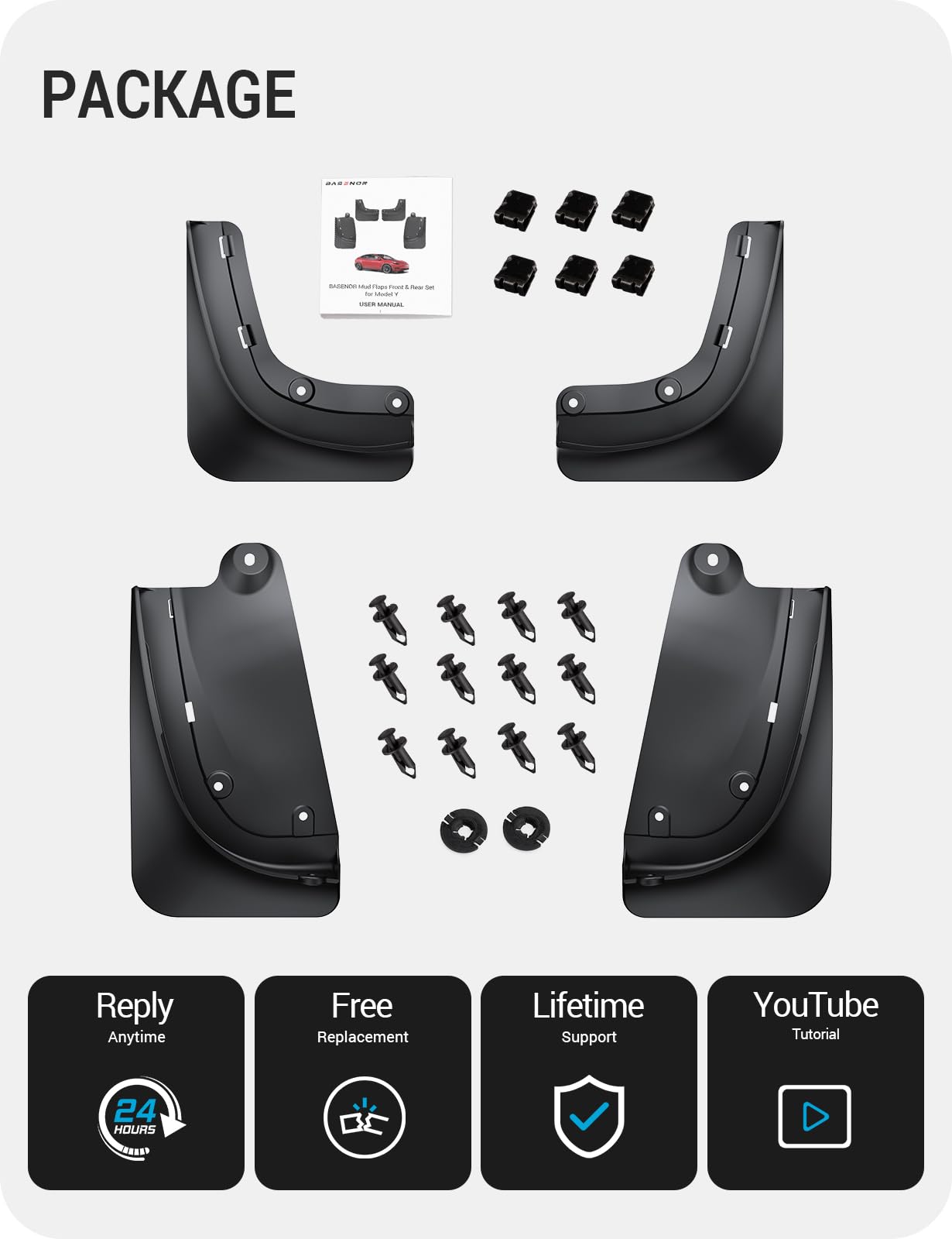 Essential Accessory: BASENOR stands behind every product with a dedication to innovation and sustainability. Model Y Juniper mud flaps are crafted from eco-grade materials for a greener driving experience. Our responsive support team ensures your complete satisfaction. We truly appreciate every customer who chooses BASENOR