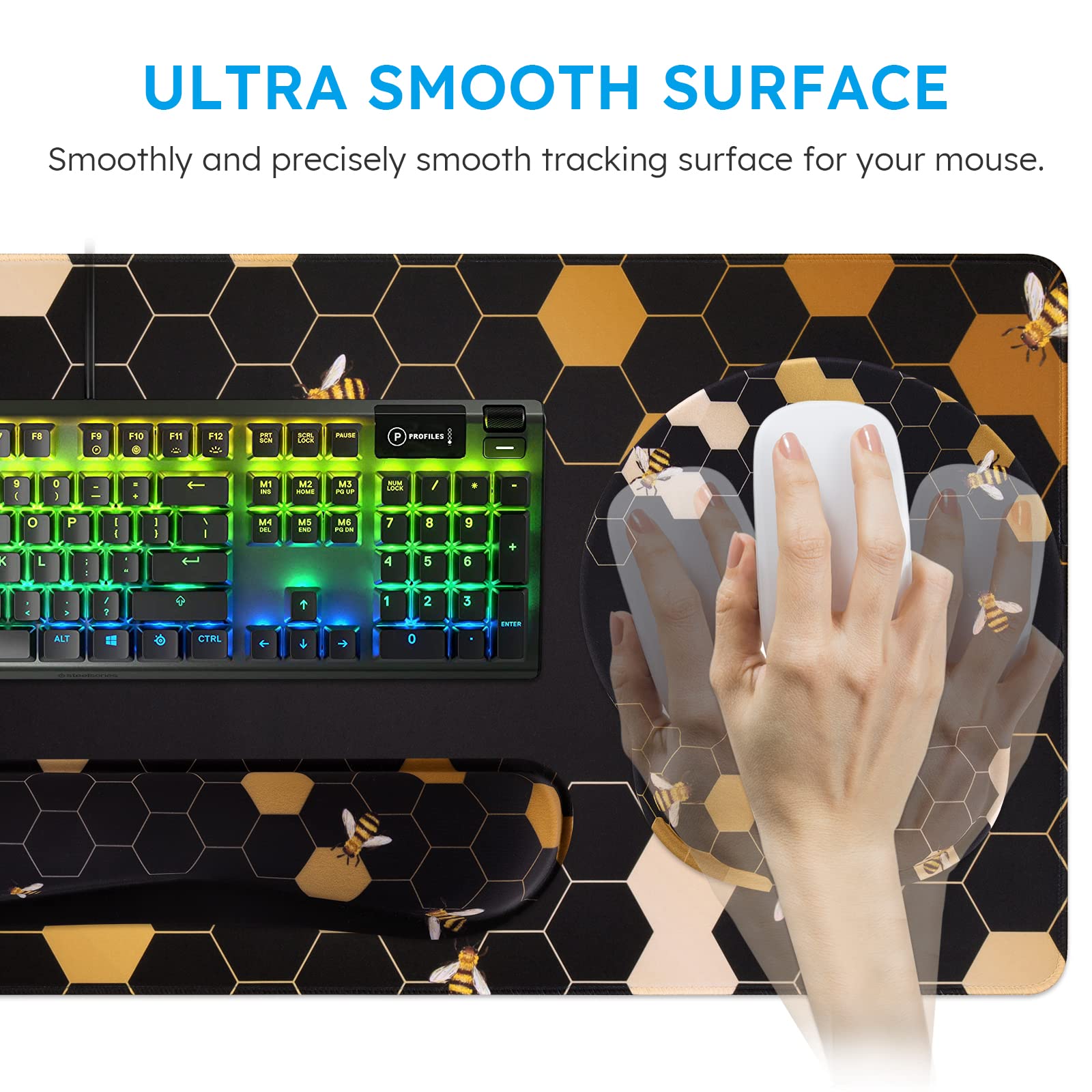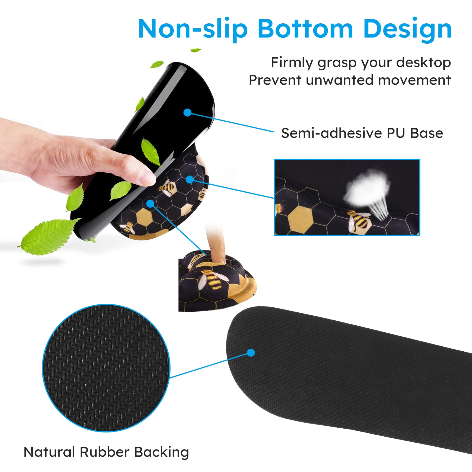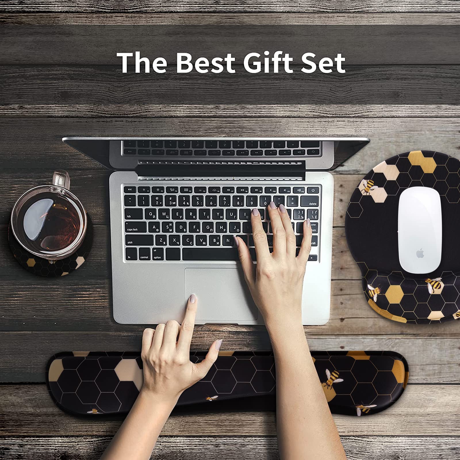 Ergonomic Design: Ergonomic mouse pad with wrist rest fits the wrist, the keyboard wrist rest and mouse wrist rest can provide a good touch and effective support for your wrist, keep your wrist and hand relaxed
