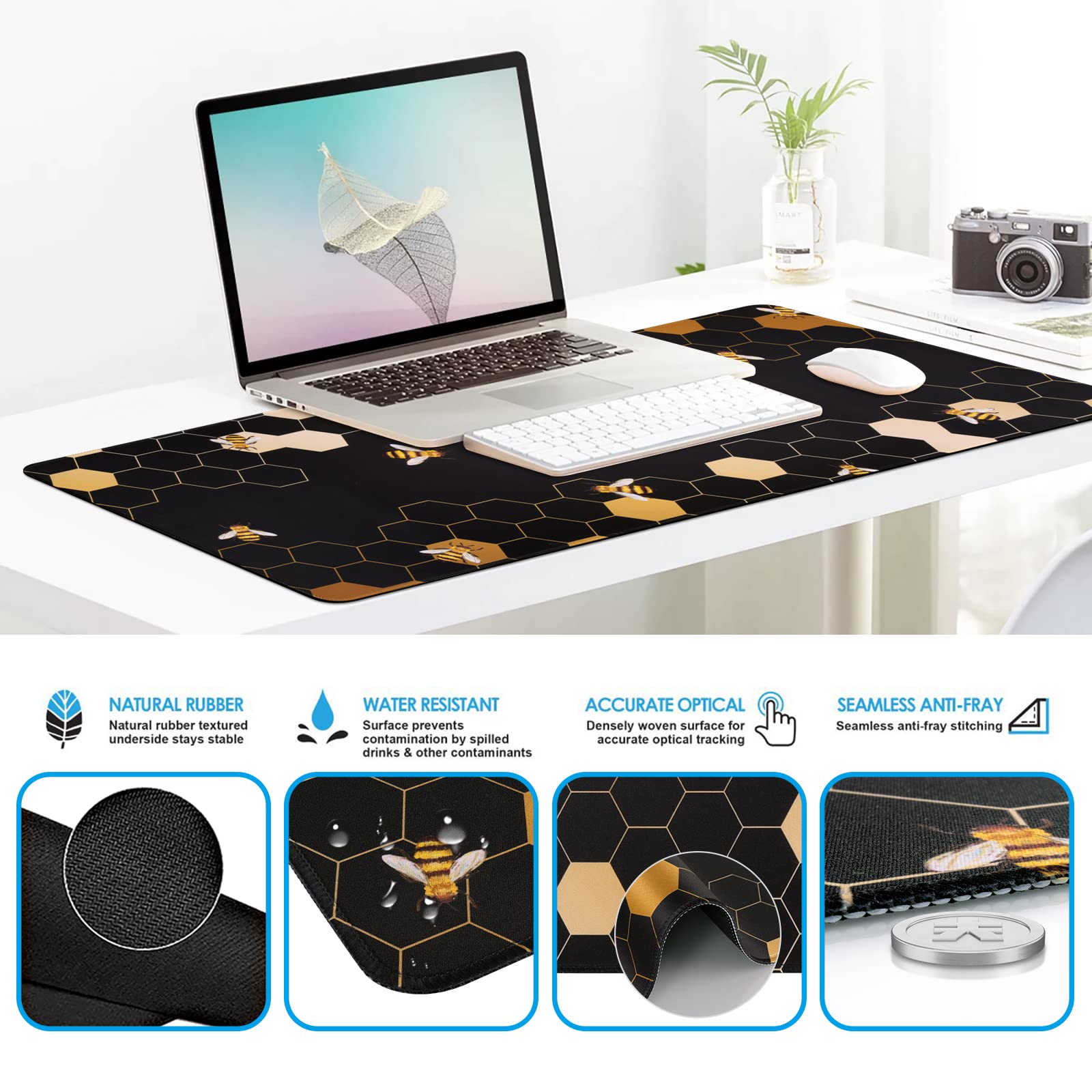 Water-resistant or Washable Surface: Long mouse pads for desk with a spill-proof coating makes liquids slide right off the surface. Effectively prevent damage from spilled drinks or other accidents. You can easily clean any dirt with a damp cloth