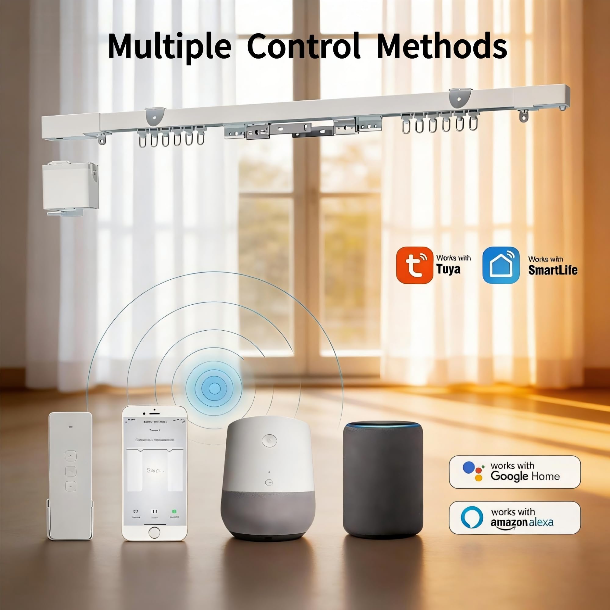 [Mute Track/Wide Compatibility] Aluminum alloy track, built-in sound deadening rubber pads, physical noise reduction of 90%, truly silent operation. This curtain track is a universal track compatible with over 90% of curtain motors on the market, allowing it to be used with smart curtain motors from other brands.