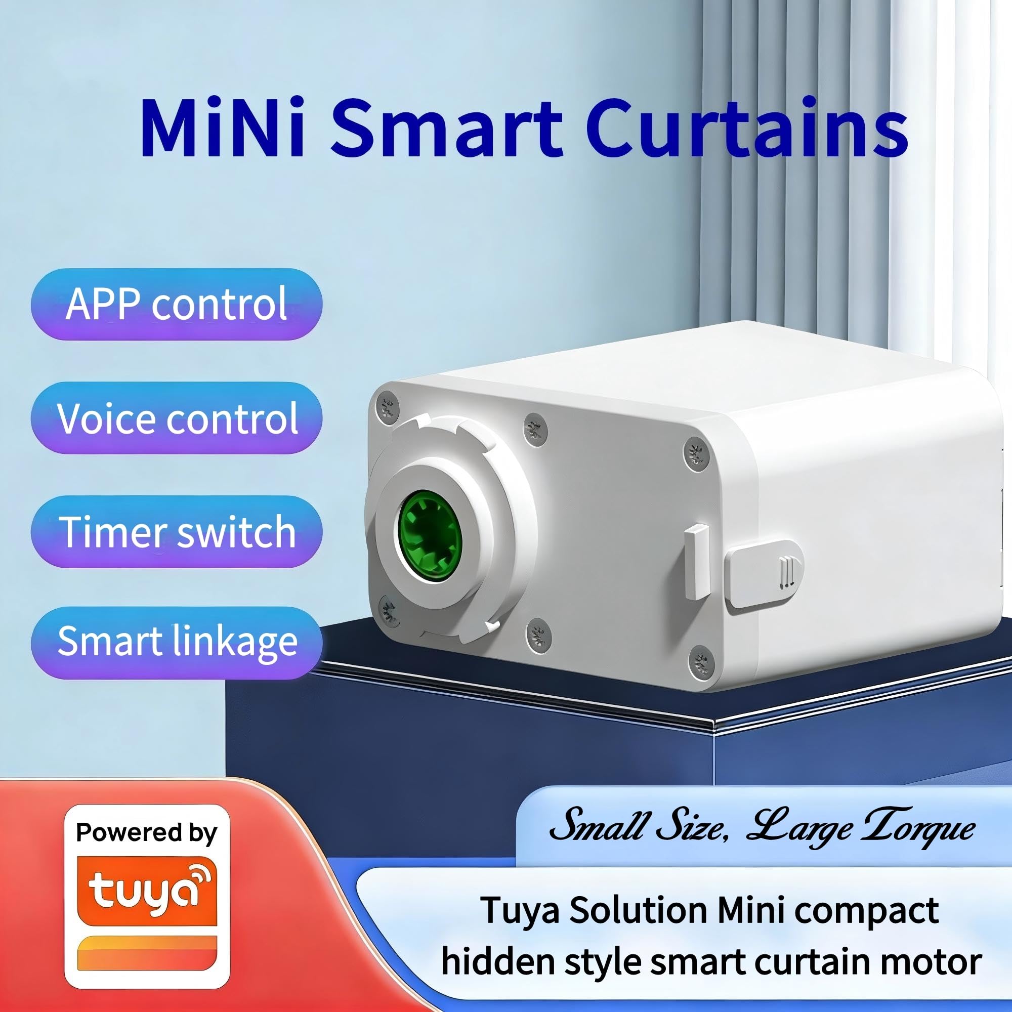 [Hidden Mini New Motor] Sized like the palm of your hand, it is easy to hide and suitable for scenes where there is a limitation on the height of the motor. Push-button locking switch, motor and track can be separated easily. Minimalist aesthetic design, upgraded silent technology, noise reduction DC motor,smooth running. The sound is no higher than 33 decibels when running, allowing you to enjoy a quiet smart life. Supports a variety of tracks. Includes a 39.37-inch (1m) power cord.