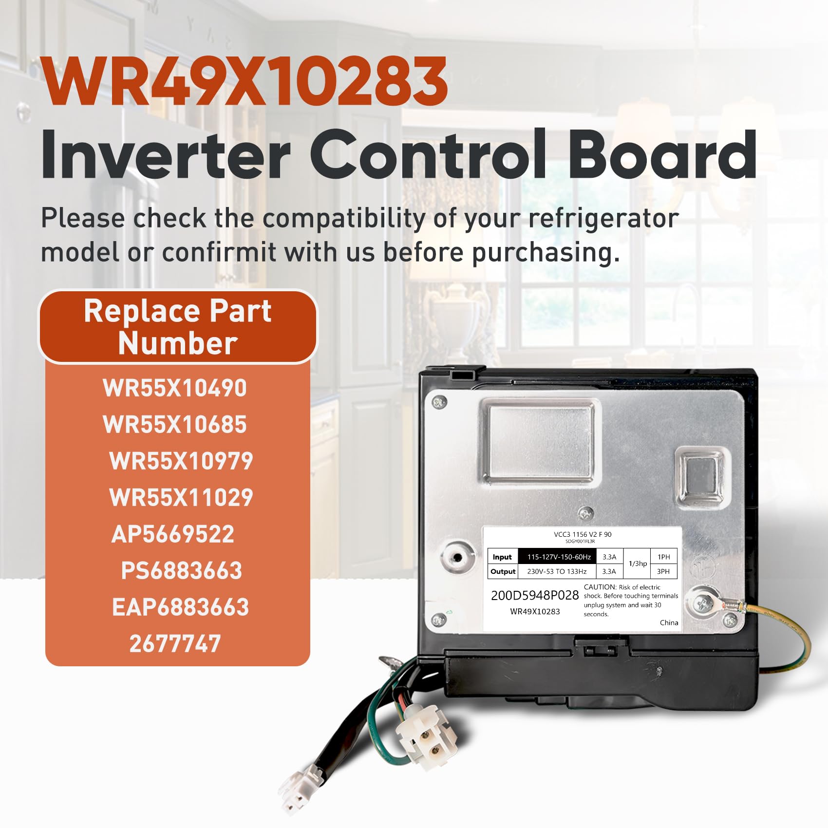 𝐑𝐞𝐩𝐥𝐚𝐜𝐞 𝐏𝐚𝐫𝐭 𝐍𝐮𝐦𝐛𝐞𝐫: The WR49X10283 inverter board is designed specifically for GE refrigerators and serves as a direct replacement for the following part numbers: WR55X10490, WR55X10685, WR55X10979, WR55X11029, AP5669522, PS6883663, 2677747, VCC3 1156 K8 F 90, It is a perfect replacement for ge refrigerator inverter wr49x10283.