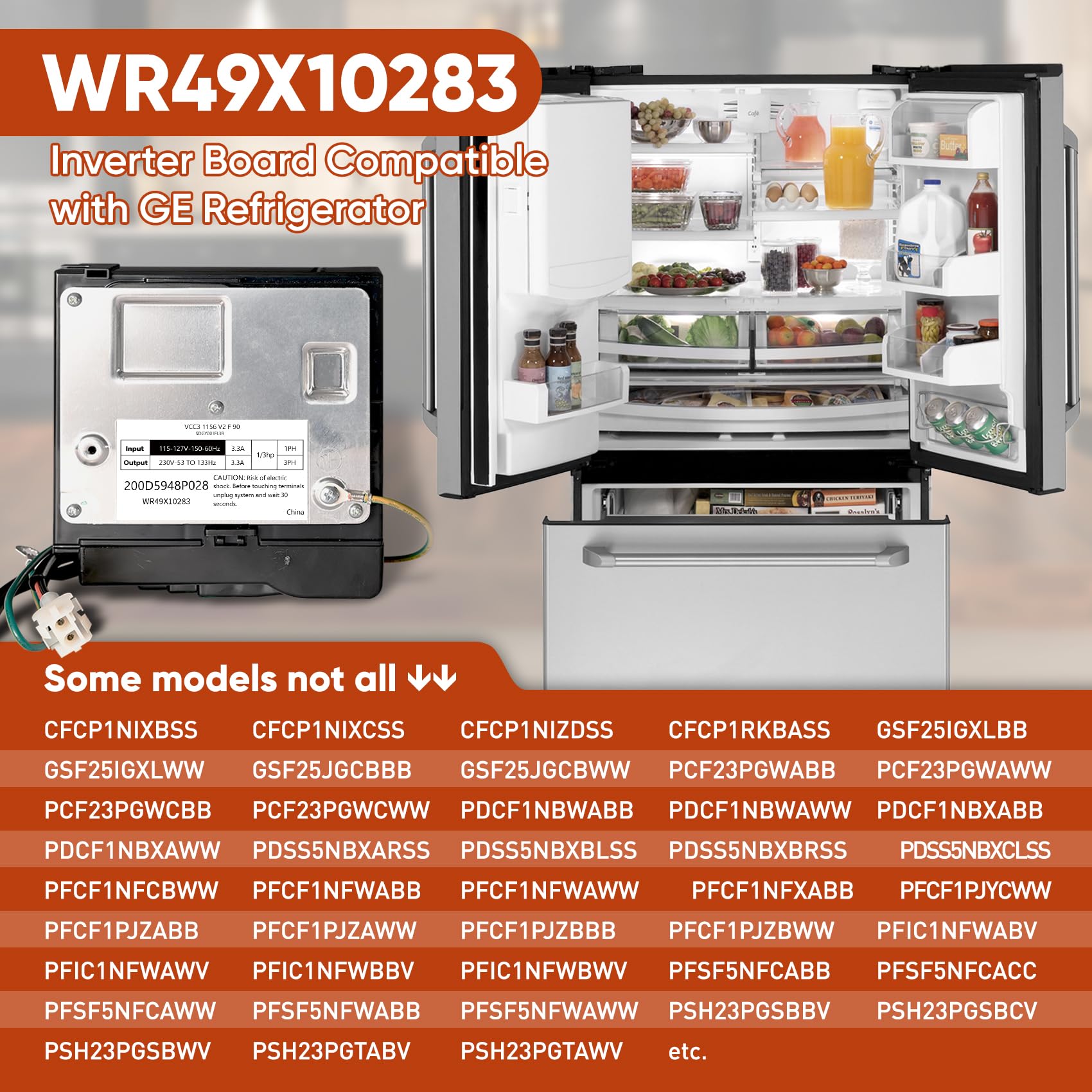 𝐖𝐢𝐝𝐞 𝐂𝐨𝐦𝐩𝐚𝐭𝐢𝐛𝐢𝐥𝐢𝐭𝐲: #WR49X10283 refrigerator compressor inverter board is compatible with various GE refrigerator models. Please check the label of your refrigerator to find your refrigerator model. Then quickly check to see if we have your model number in our product description by “Ctrl+F”. Our WR49X10283 inverter board is an ideal choice for anyone needing a reliable replacement part.