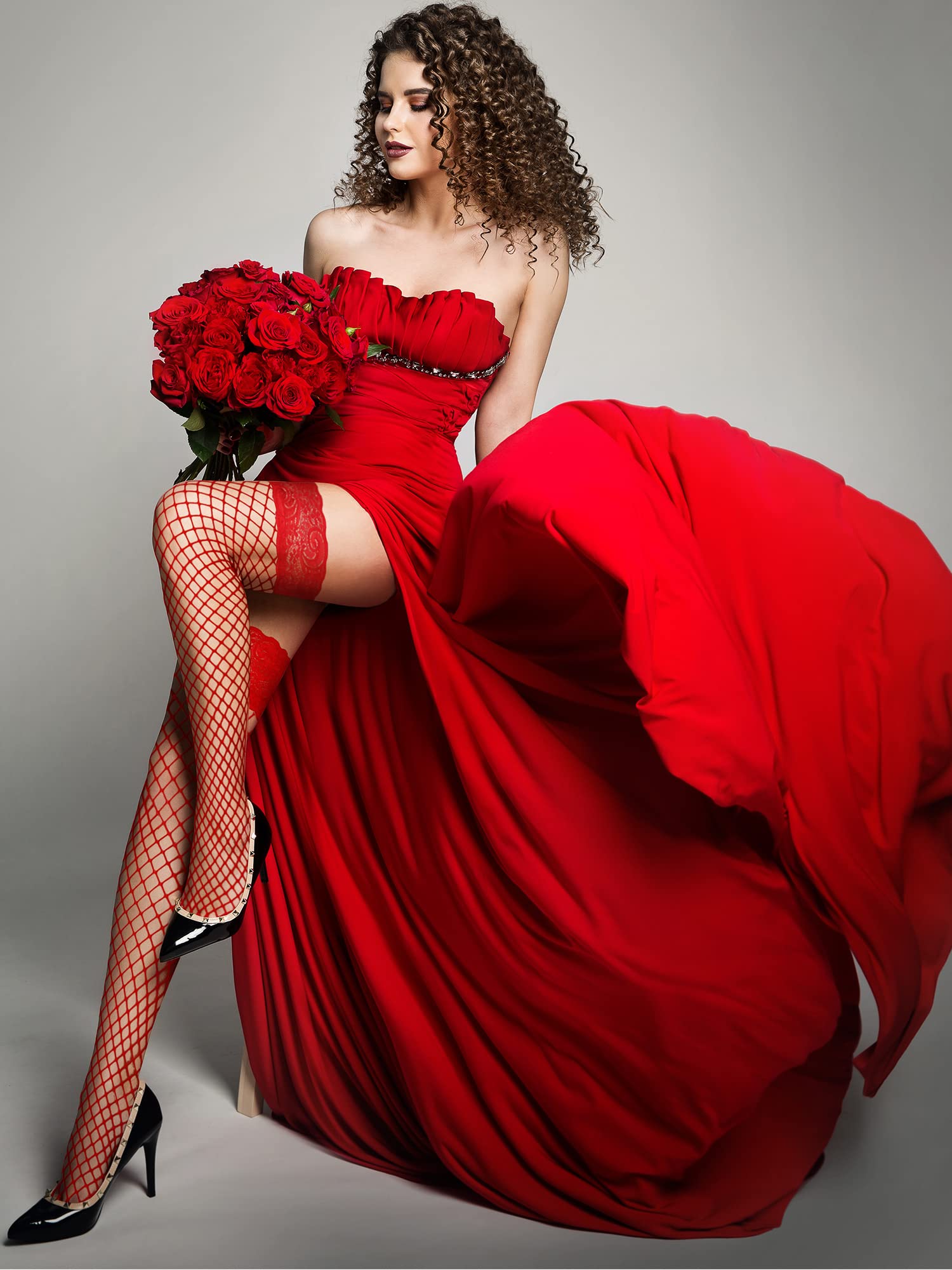 Ideal Fit: our thigh high lingerie stockings are made of lace silicone top and chinlon and spandex, reliable and lightweight, comfortable and breathable, good elasticity makes them close to your feet and legs, please be careful to avoid contact with pointed objects