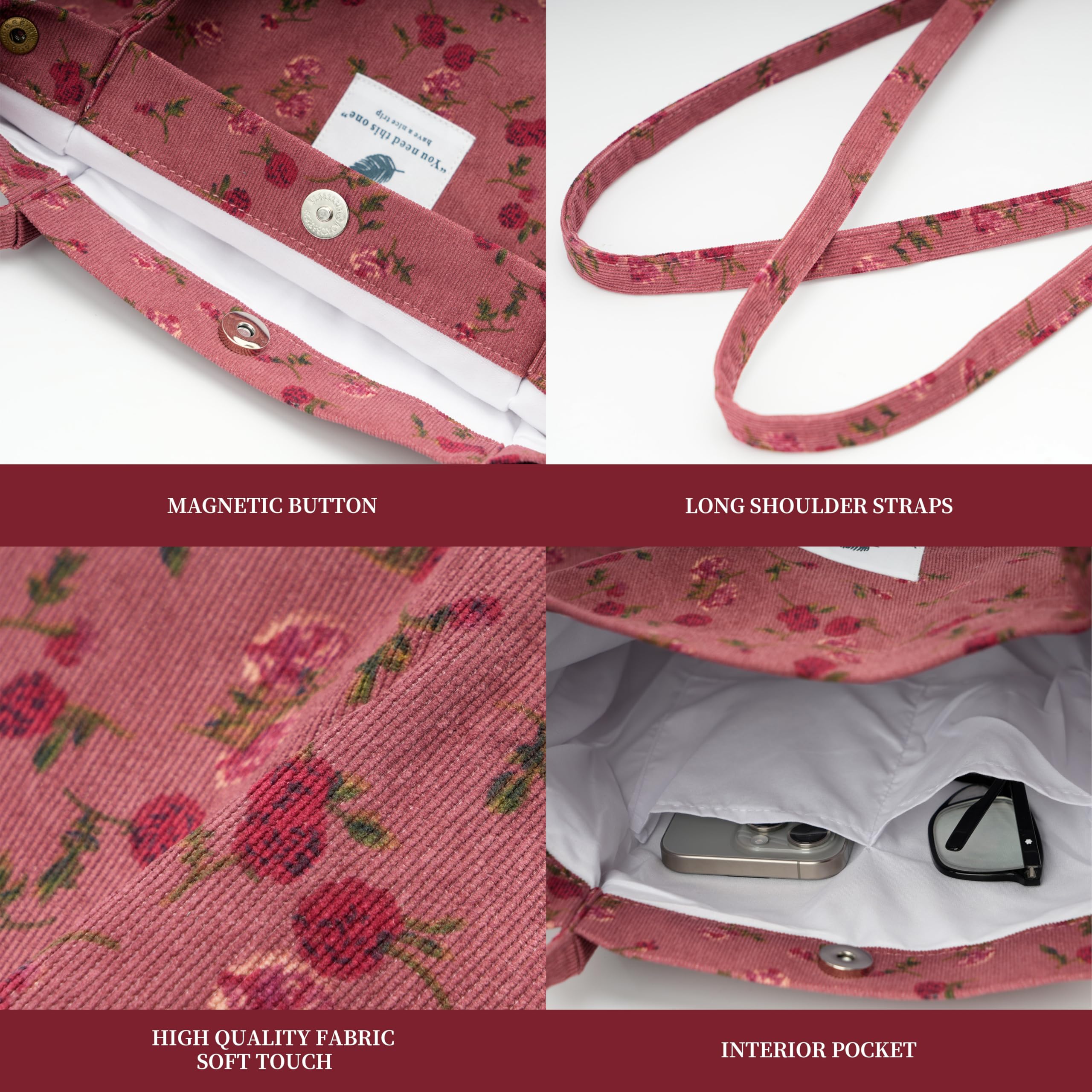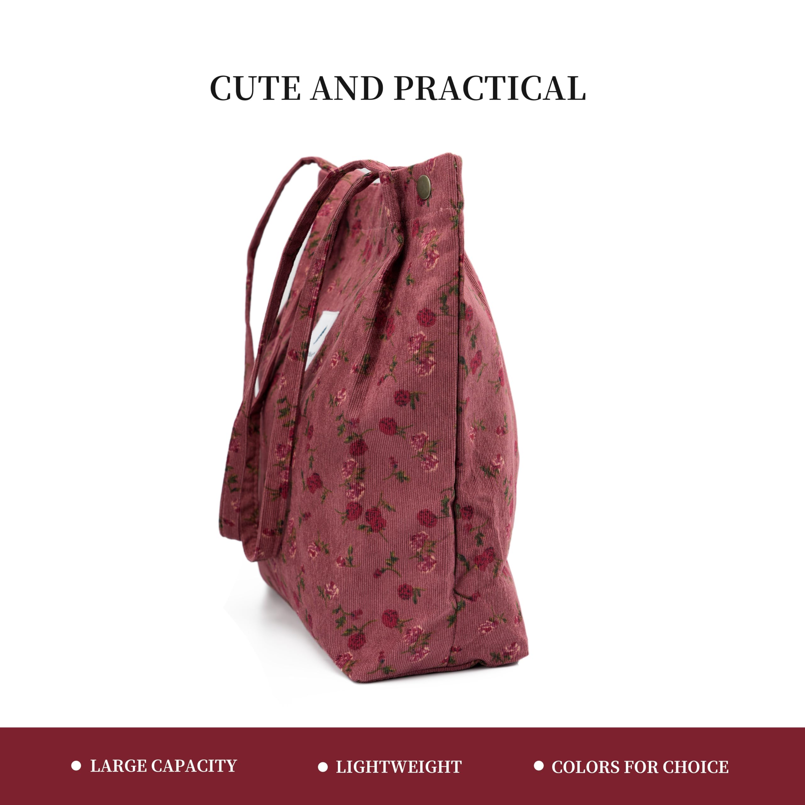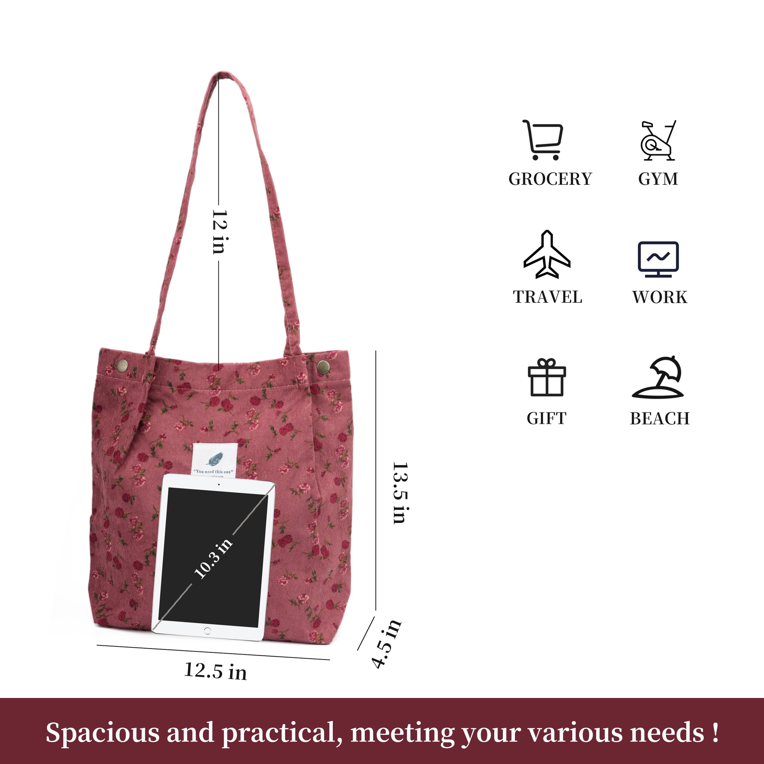HIGH QUALITY: The tote bag is made of high quality corduroy fabric, soft to the touch, good texture, with reinforced shoulder straps, durable, fashionable and versatile.