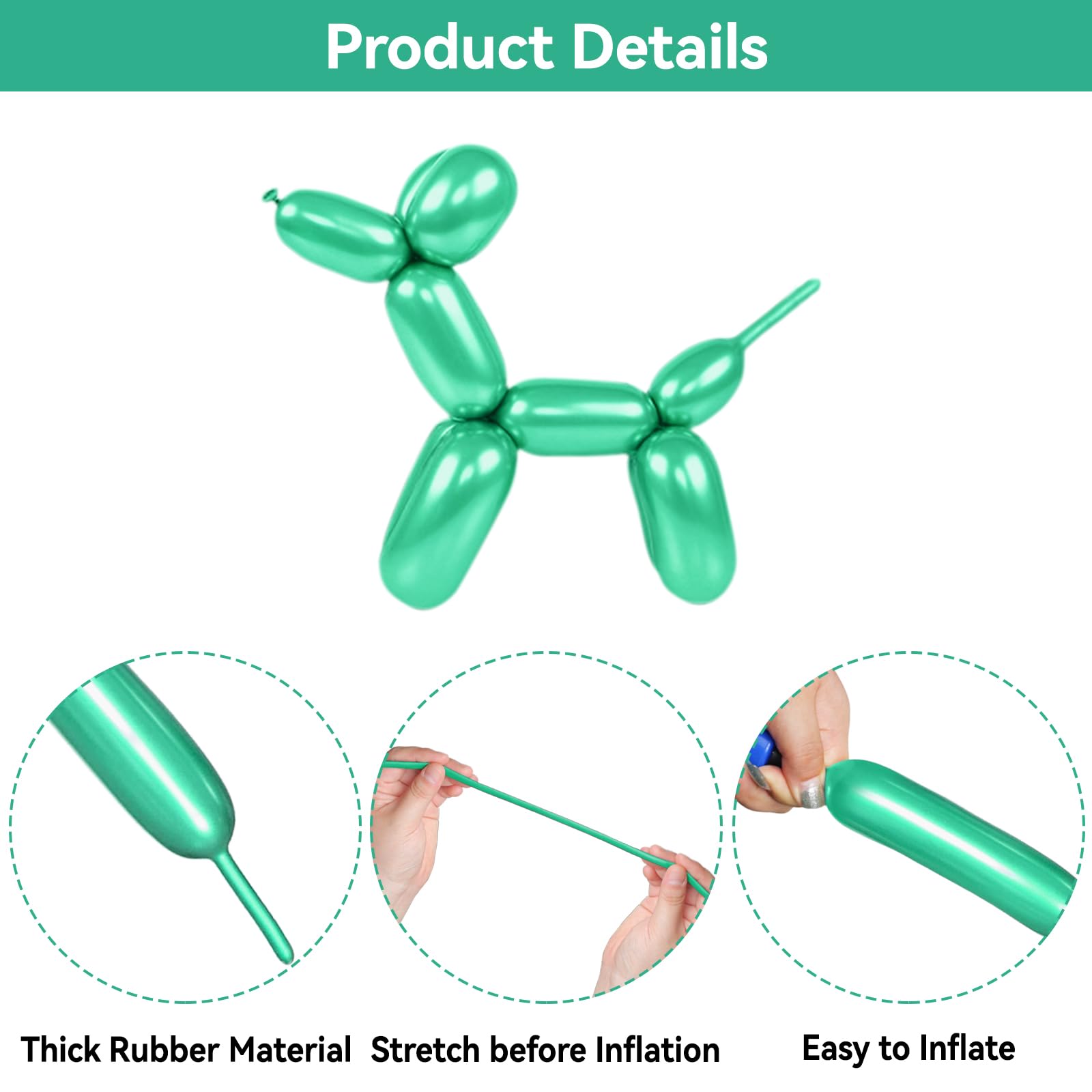 THE PACKAGE INCLUDES: 100 long balloons for balloon animals,can be shaped into any interesting sculpture or animal for professional balloon twisters and artists.
