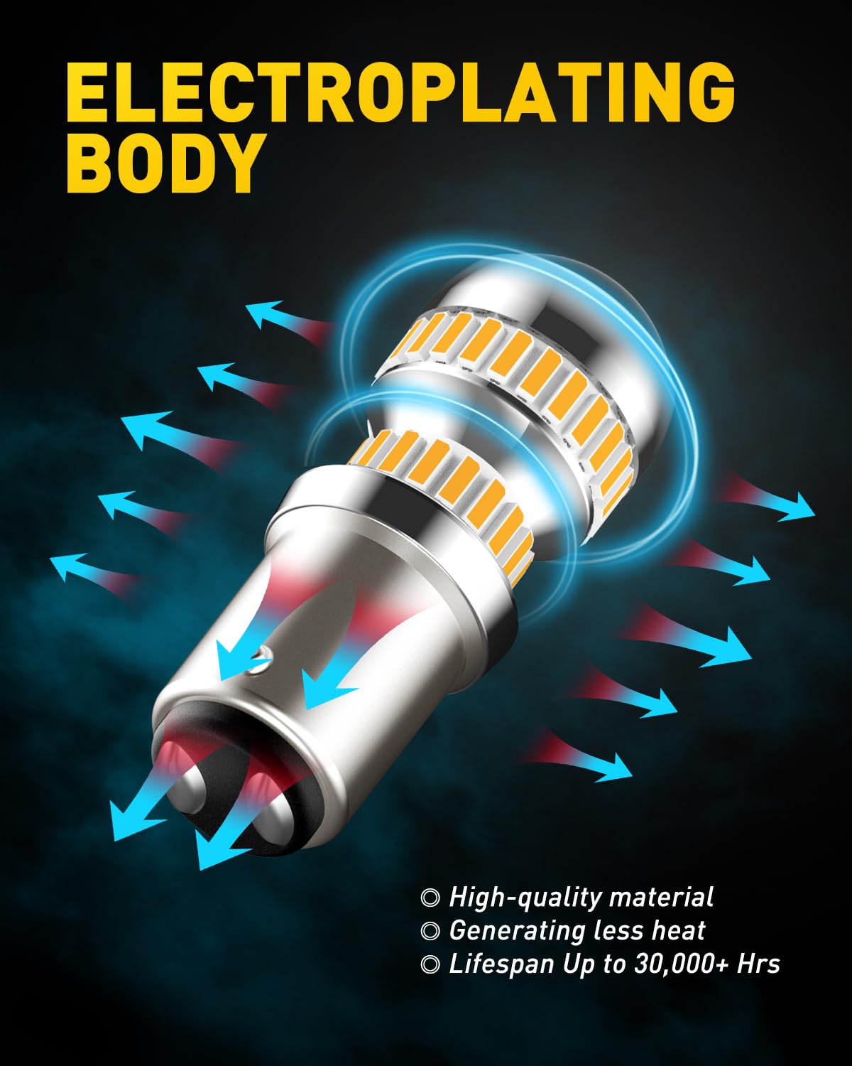 Electroplating process housing. Improves oxidation resistance and produces less heat. High-end styling, matching great in the assembly. Ideal replacement for your halogen 2357 amber bulbs