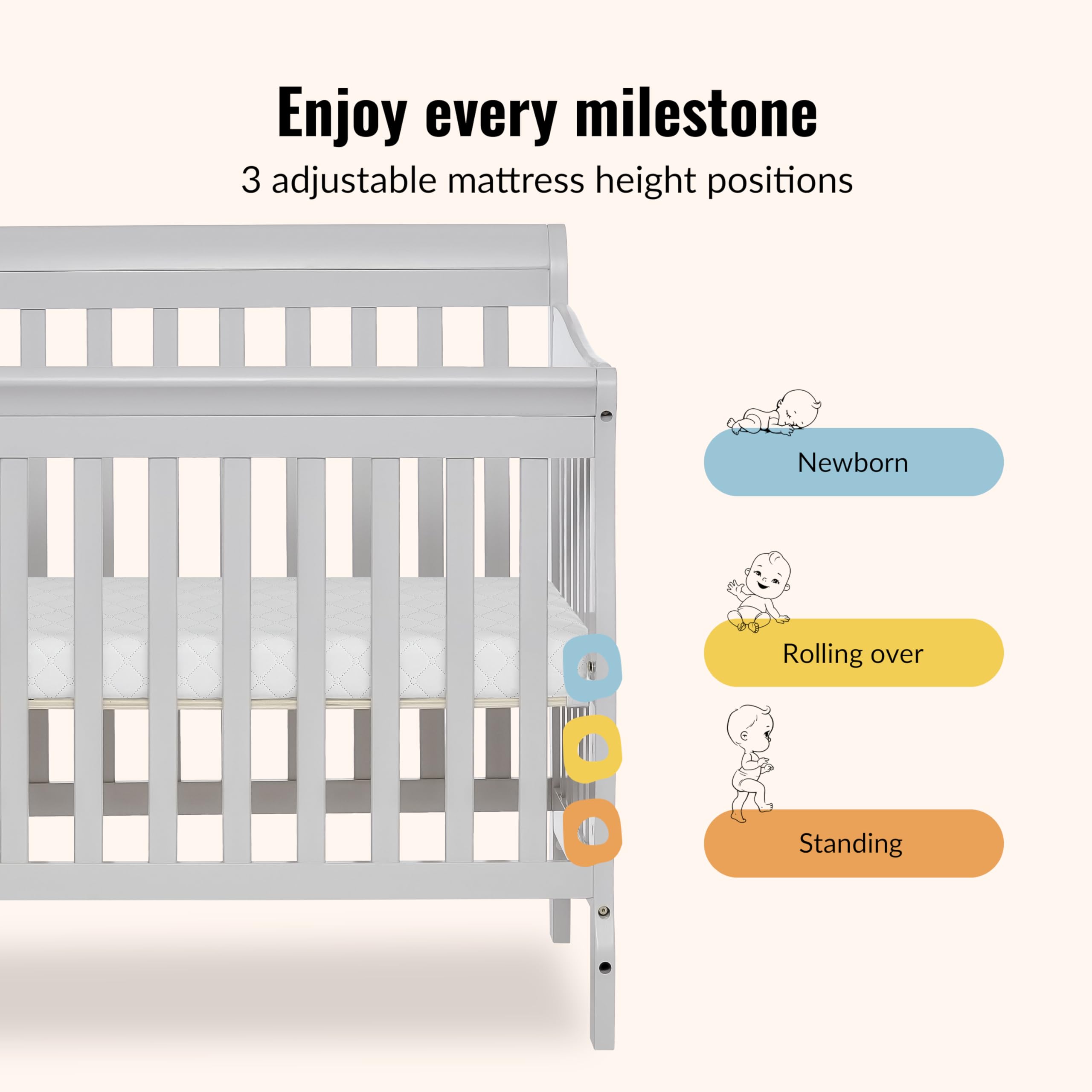 Sturdy Craftsmanship: Built from New Zealand pinewood for durability and elegance, with versatile finishes designed to match any nursery style. Includes 3 adjustable mattress height positions to adapt as your child grows