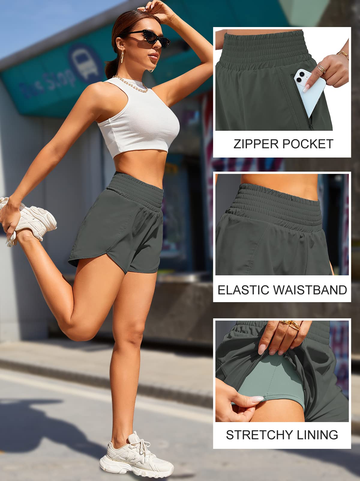 Zipper Pocket: This womens gym shorts with a zipper phone pocket on the left, it can hold plus phone well when you workout.