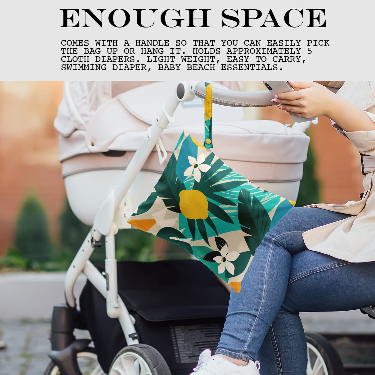 MULTI-FUNCTIONAL – Our wet bags have lots of uses. It is suit for carrying diapers, dirty gym clothes, wet swimsuits and sanitary napkin, menstrual pad; not just for wet stuff - these bags make excellent organizers for toys, cosmetics, accessories, toiletries, electronics, travel and more. With a snap handle, snap your bag wherever you need it - , changing,tote bag, table or suitcase.