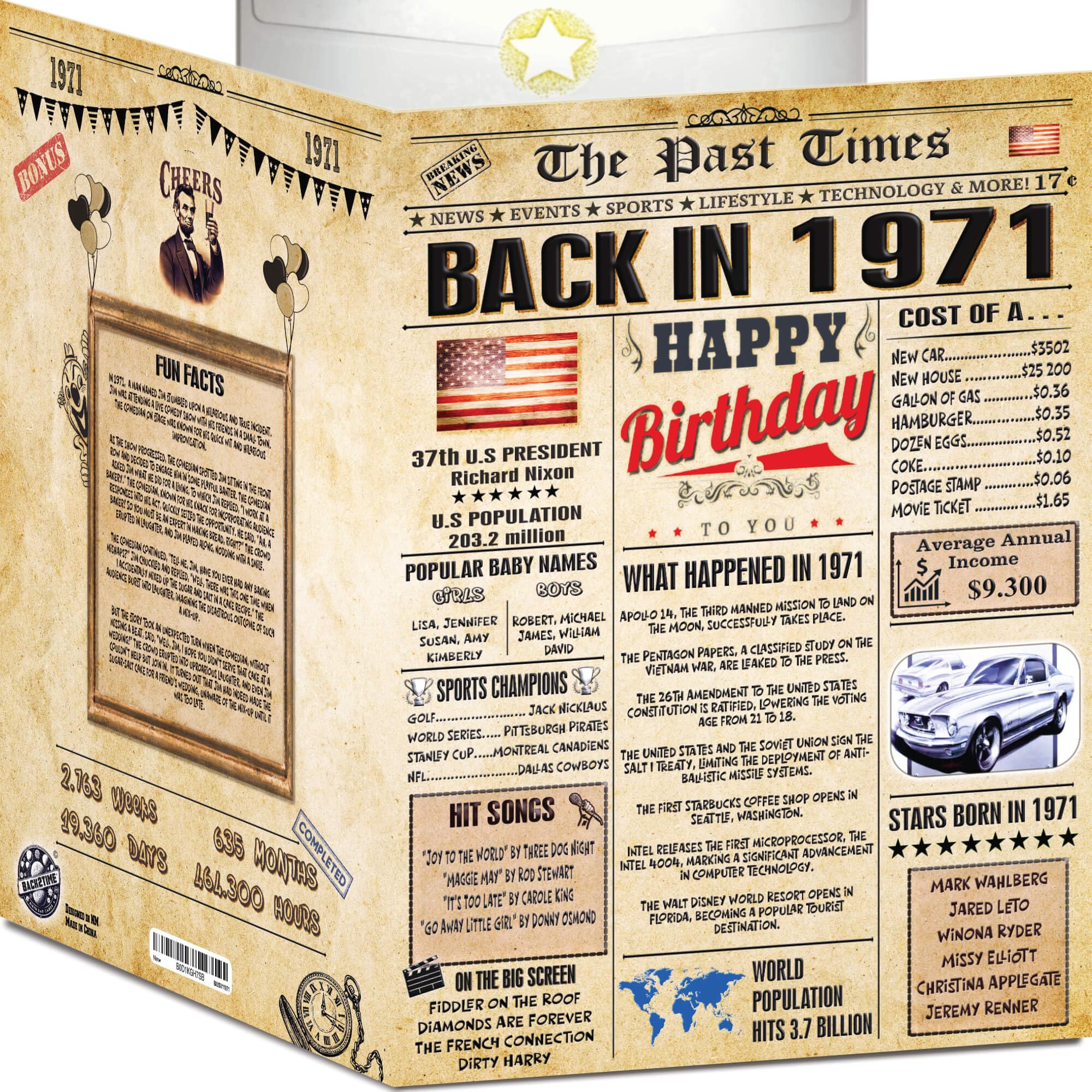 π FUNNY BIRTHDAY CARD + EXCLUSIVE ENVELOPE π Enjoy a beautifully printed Back in card that's entertaining to read, featuring a special bonus on the back with intriguing stories or lesser-known facts from that year. The interior offers space for personalized messages, designed with an aged appearance and elegant decorations to enhance the vintage feel. The included envelope boasts a unique design ideal for mom and adult born in 1971. Birthday Cards for Women, Birthday Cards for Men.