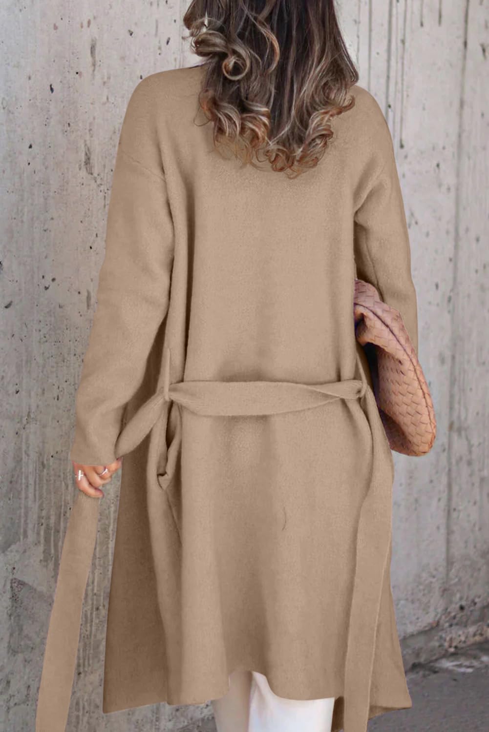 Designs:This cardigan features draped open front,pockets,long sleeve,thigh length cardigan,knitted,relaxed fit. The Style B has a belt,can be worn in different way. For the ultimate chic but chill outfit style with a white tee and some chunky boots.
