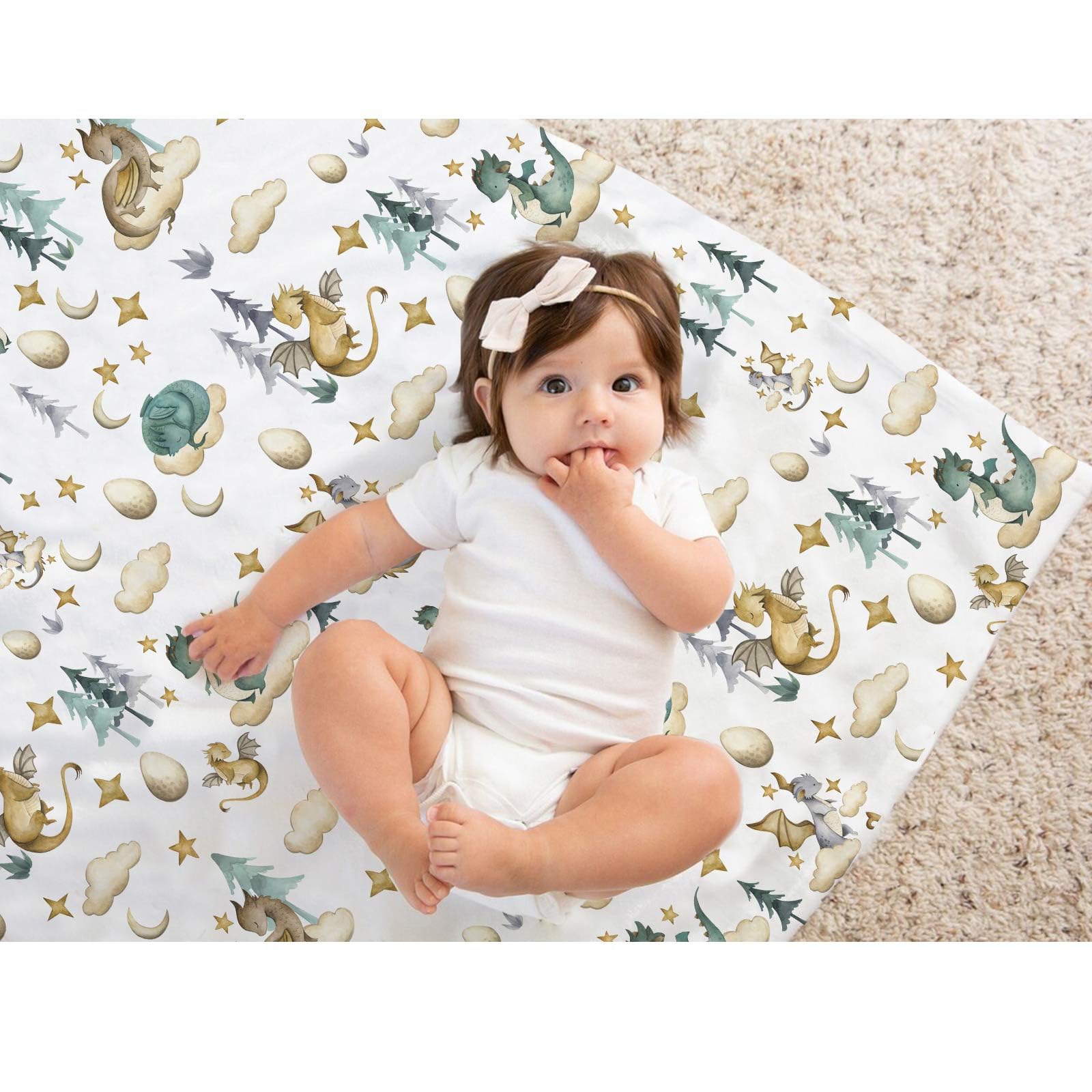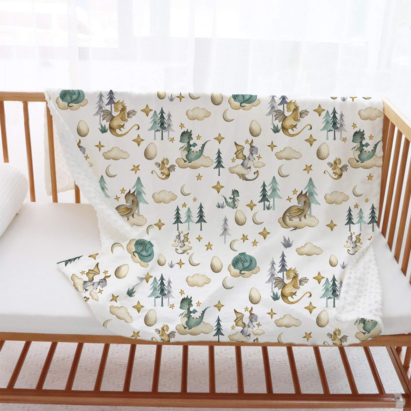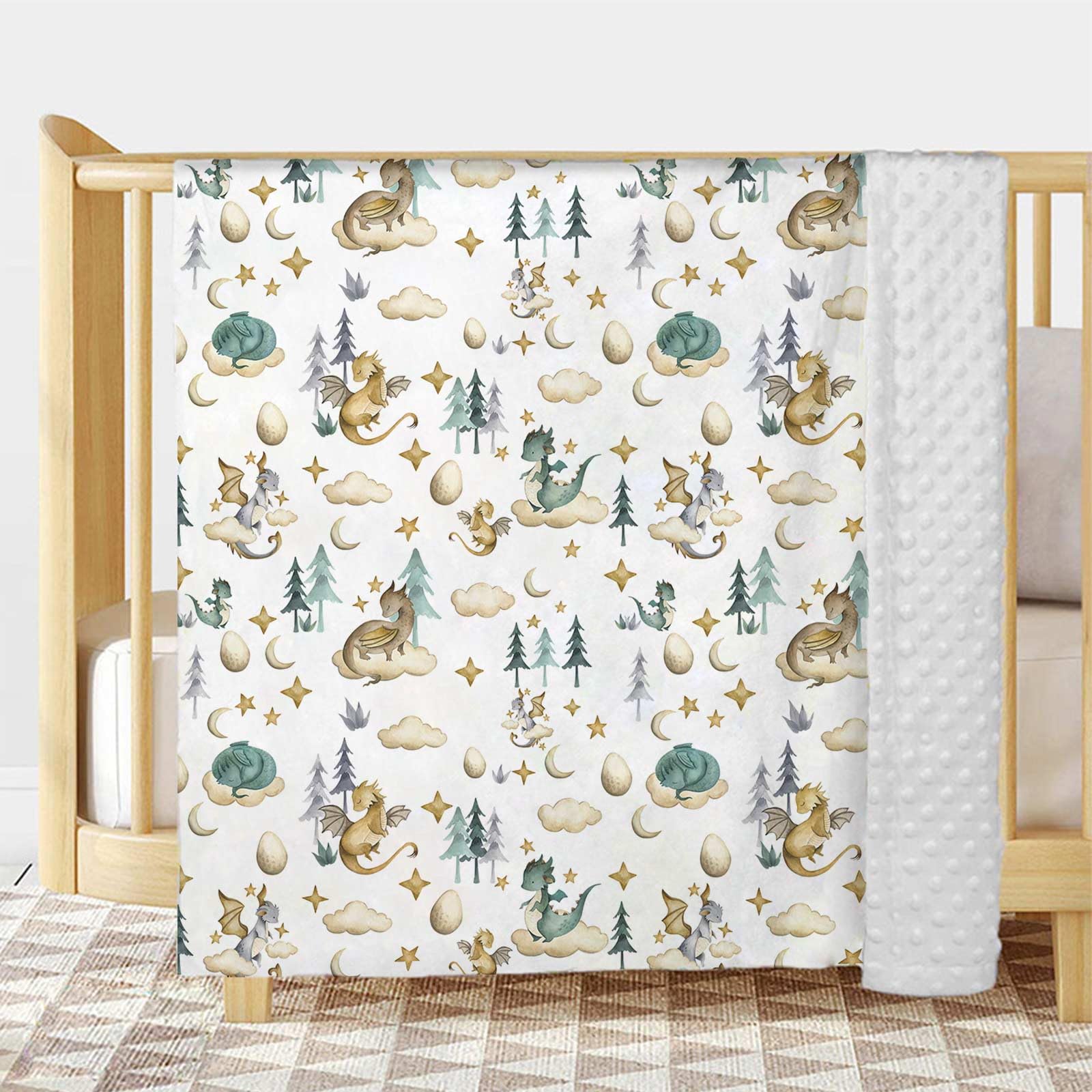 Unique design: Each baby blanket features a double-sided design, with a cute dragon pattern on one side that can arouse children's curiosity, and raised plush three-dimensional dots on the back that can soothe babies at night.