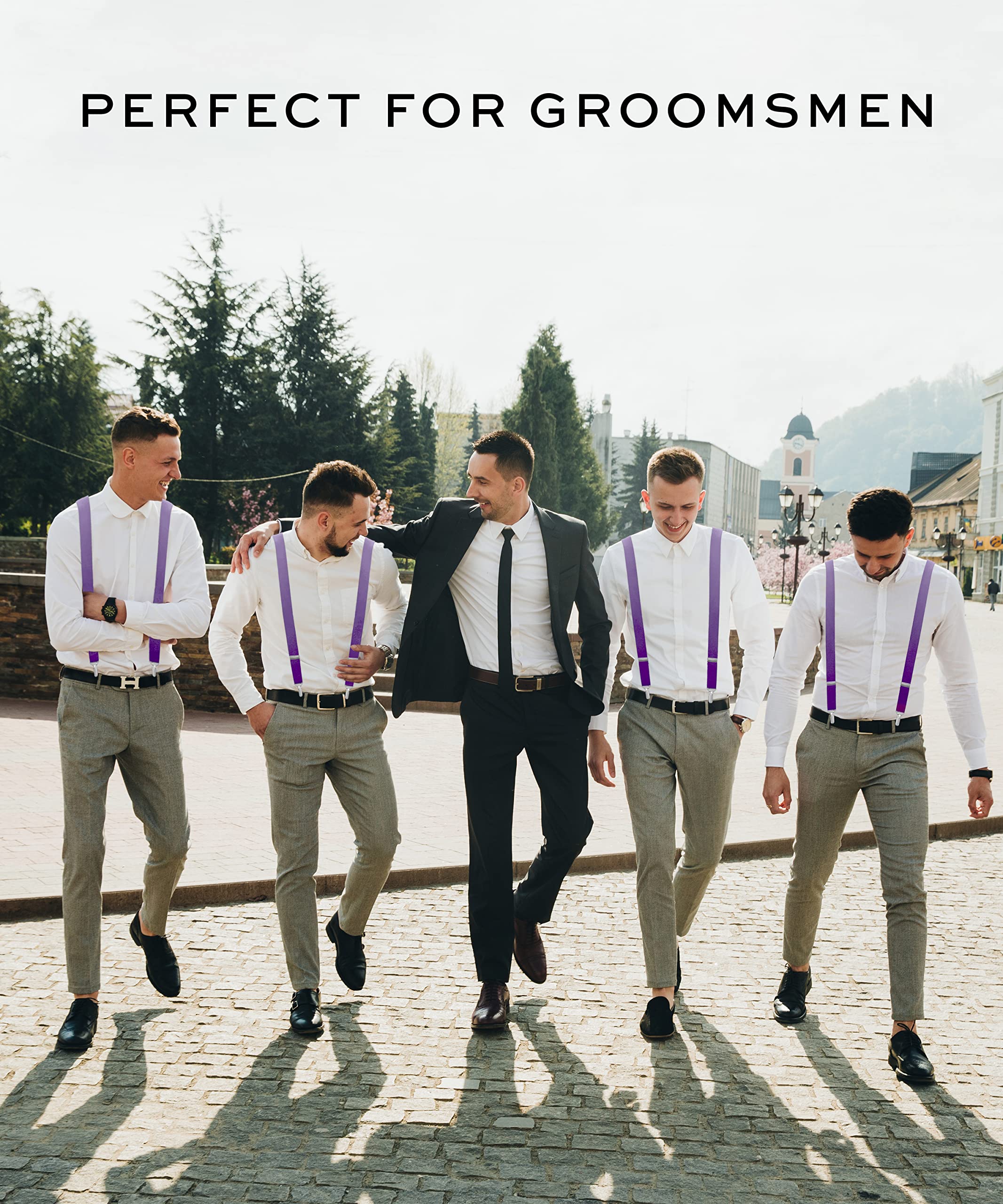 PERFECT FOR ANY OCCASION - Suspenders for men intended for any pants or trousers from a work suit to a wedding tuxedo "Y" Back construction for EXTRA COMFORT features a LEATHER sewn in patch to insure long life.