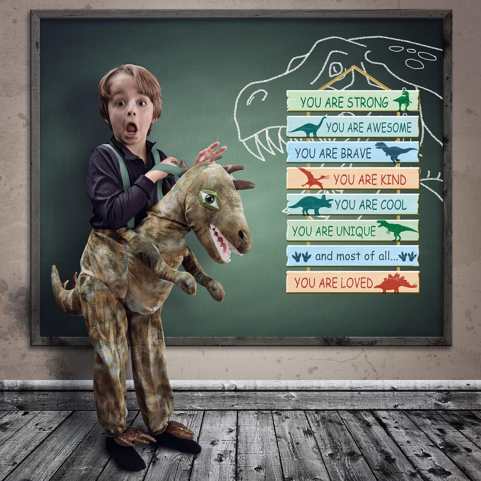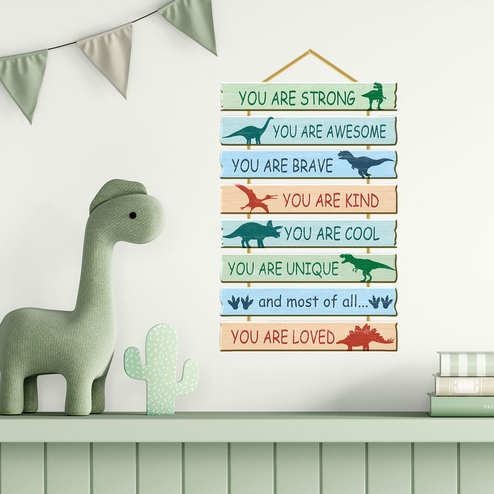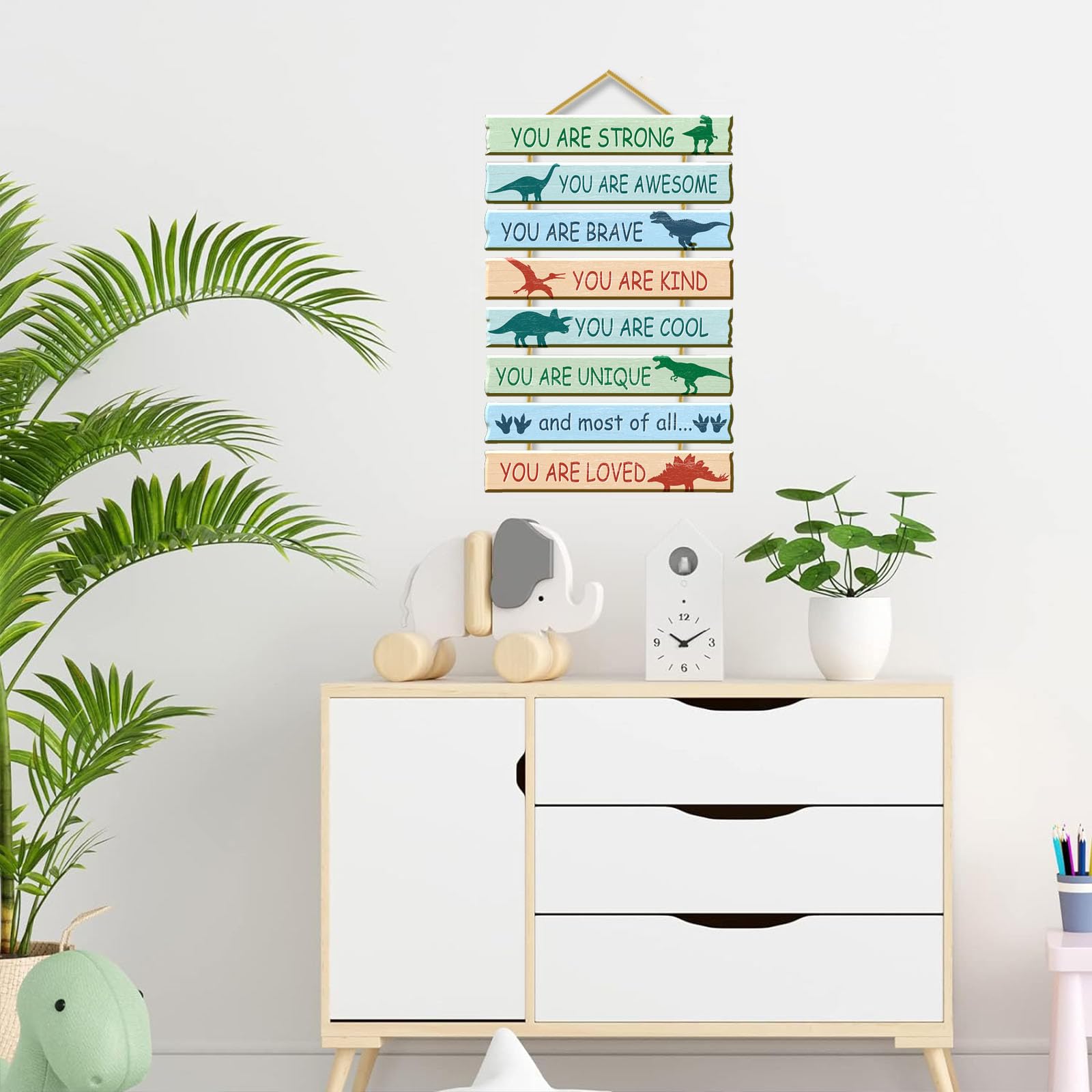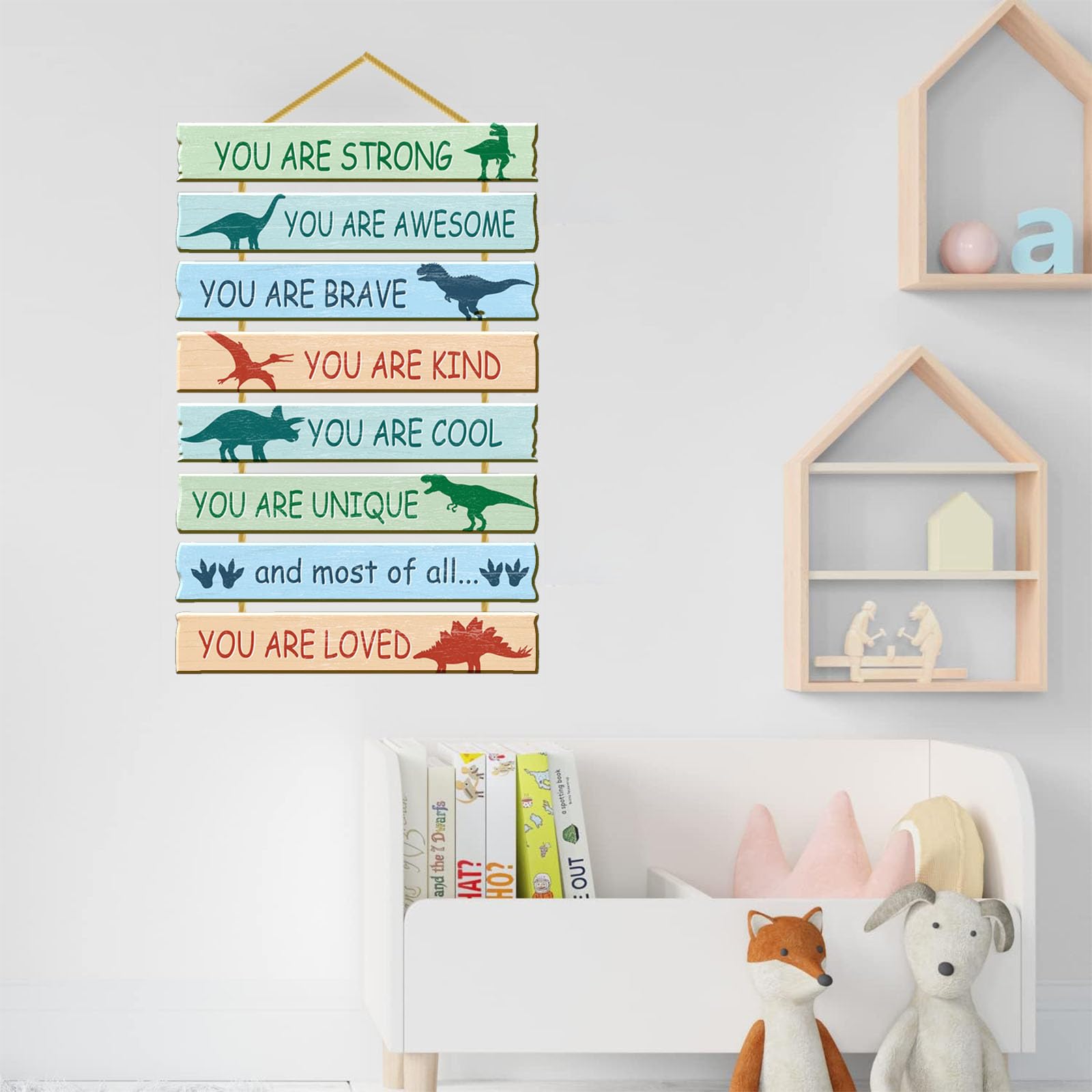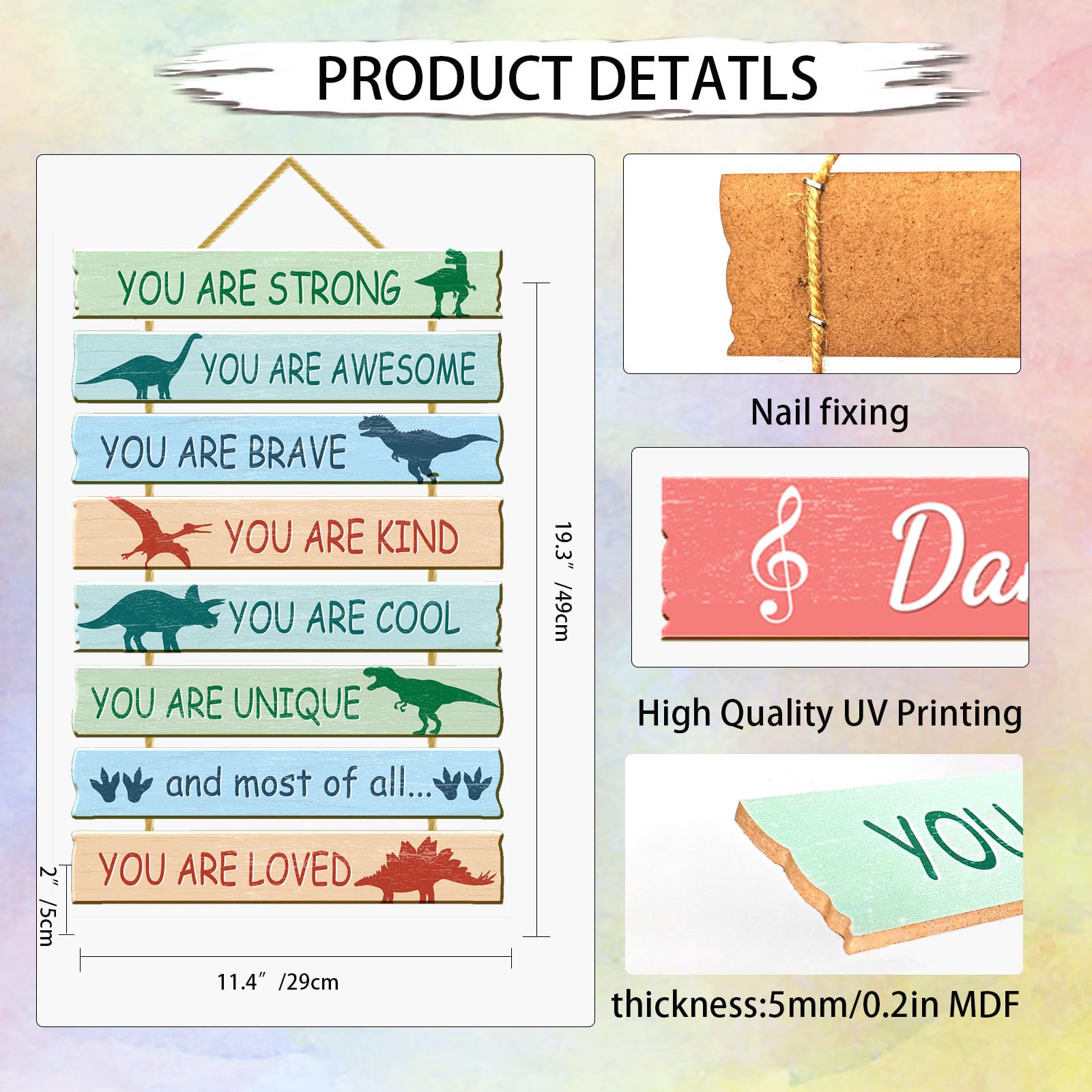 Why Choose Rutiyoka -- Our kids bedroom wall sign made of high quality MDF, compared to plywood, our dinosaur wall decor made of MDF has a smoother surface, no burs, no smell, brighter colors, and more heavy. It must be excellent wall art for kids' room décor.