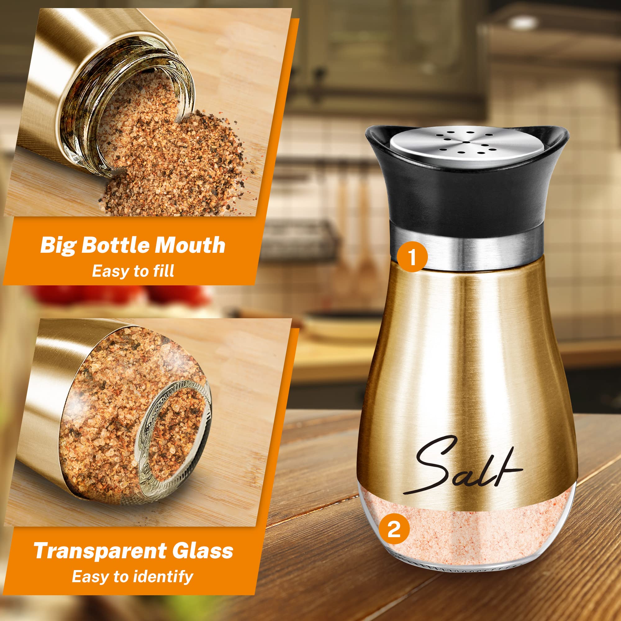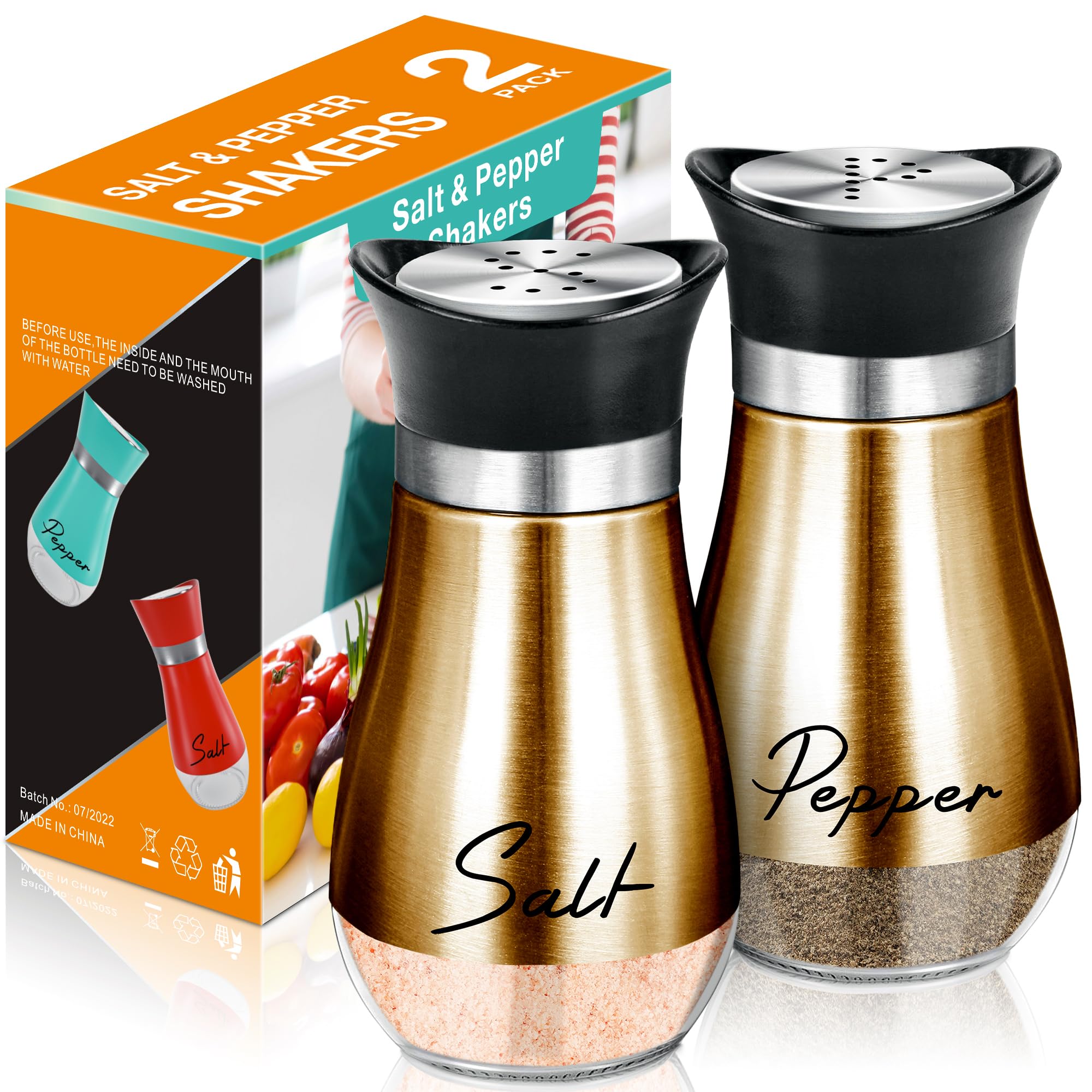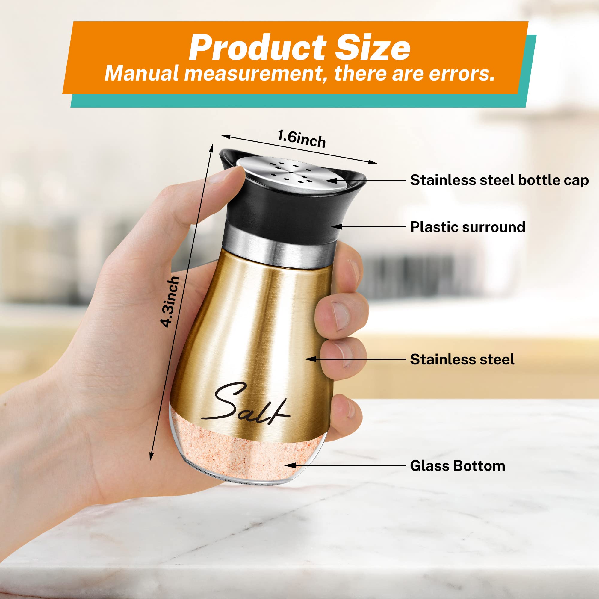 Salt and Pepper Shakers Set:Don't you hate constantly having to refill your salt and pepper shakers? Their size about 4.3”x 1.6", with the capacity of 4 oz and holding 1/2 cup of spices, this set is the perfect size to cut down on constant refills without being bulky. When you do have to refill, the clear glass bottom will let you know when it's time