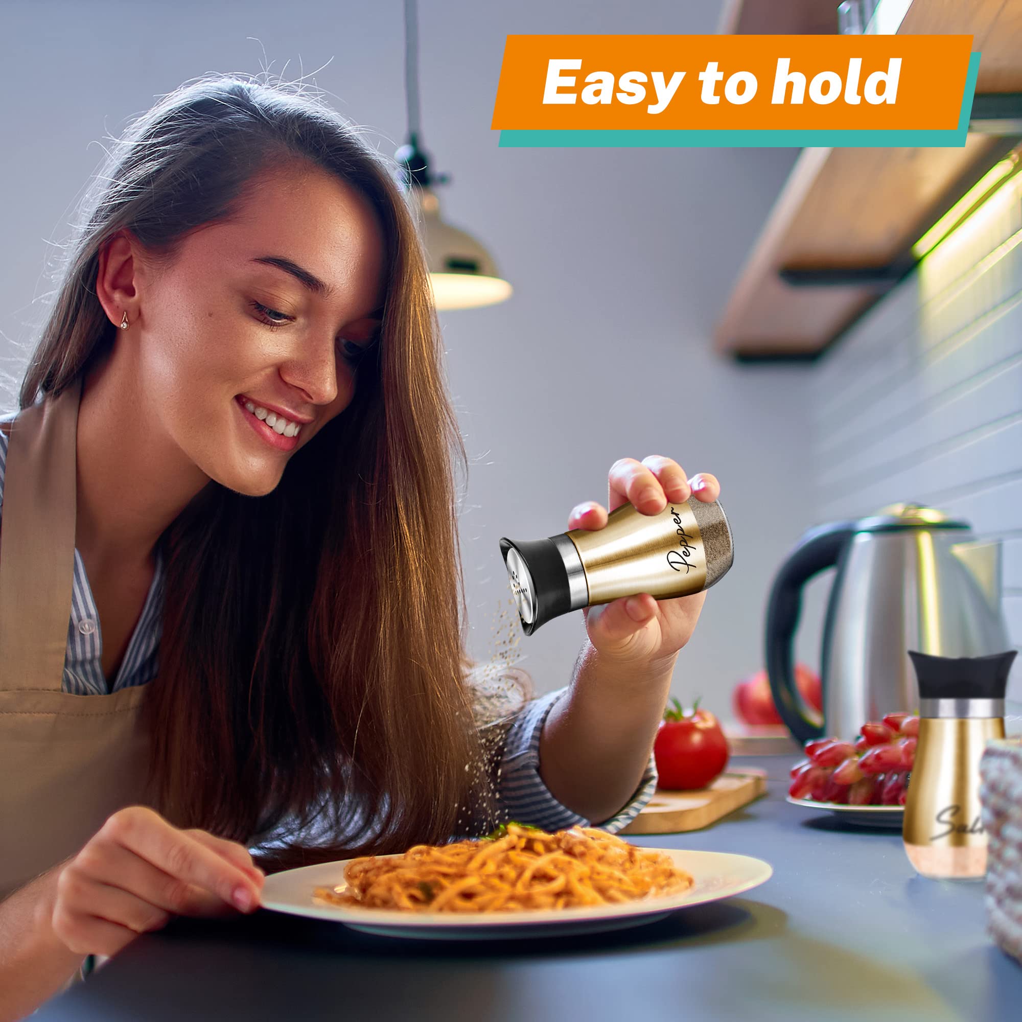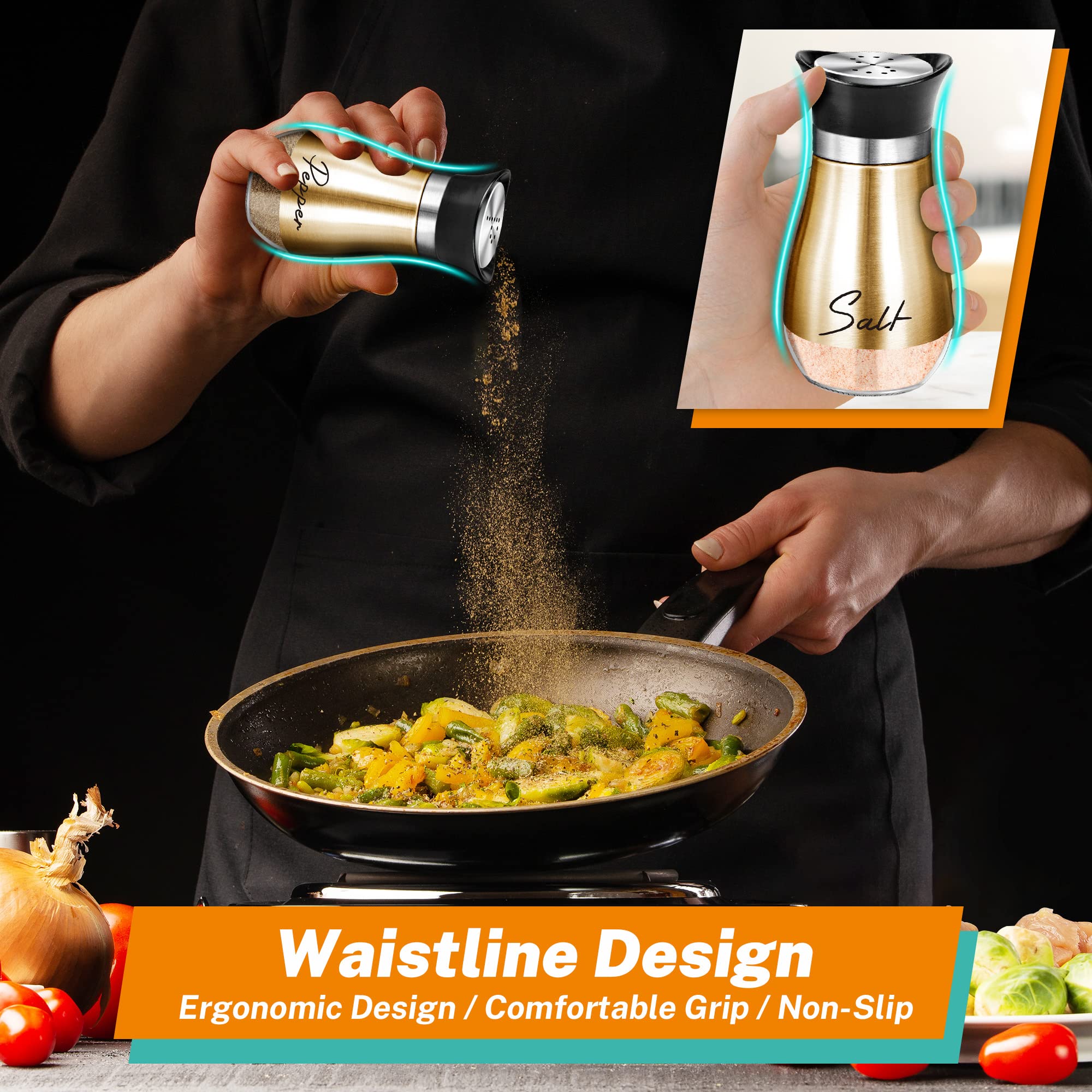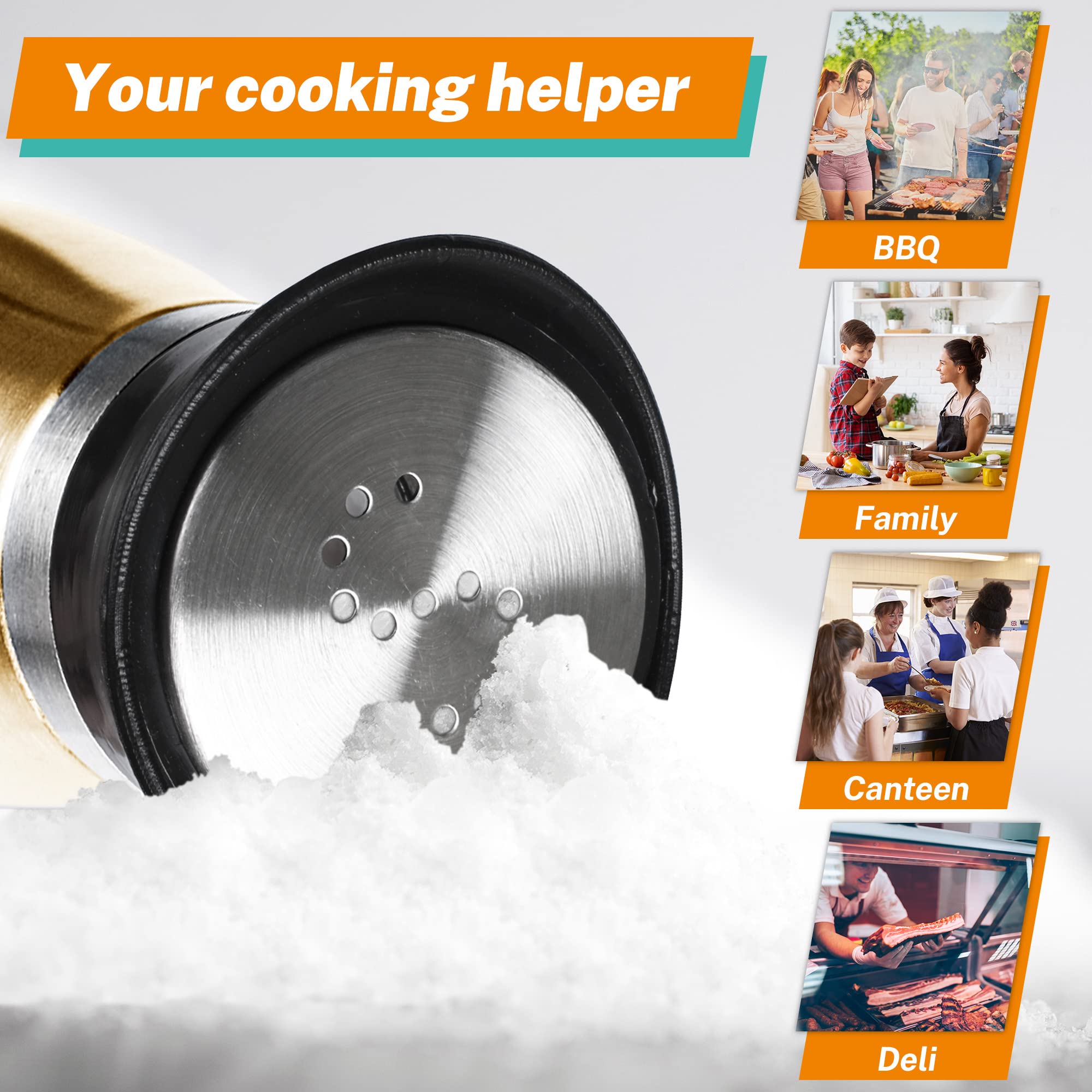 No Over-Seasoning:There are 11 small holes evenly distributed on the Stainless Steel Lid, you only need to shake 1-2 times at most to get the salt and pepper flowing just right, saving time and not over-seasoning. You and your family can enjoy the pleasuring of cooking