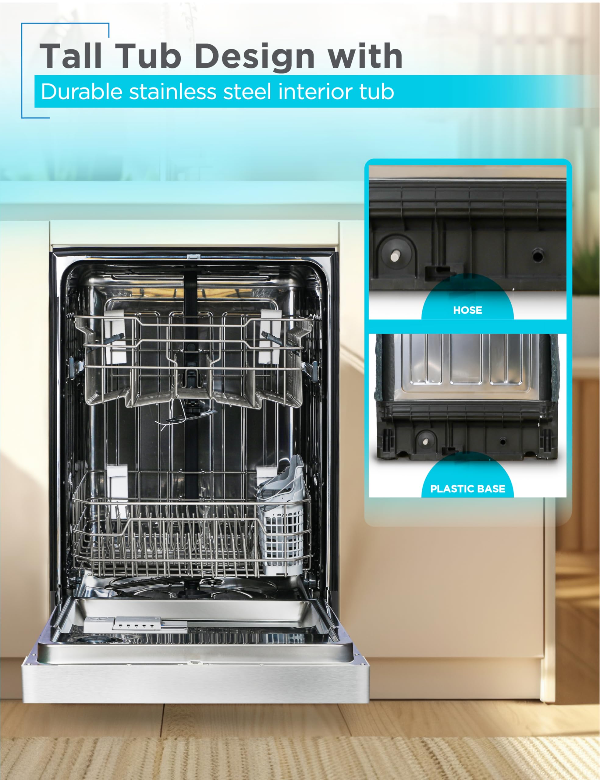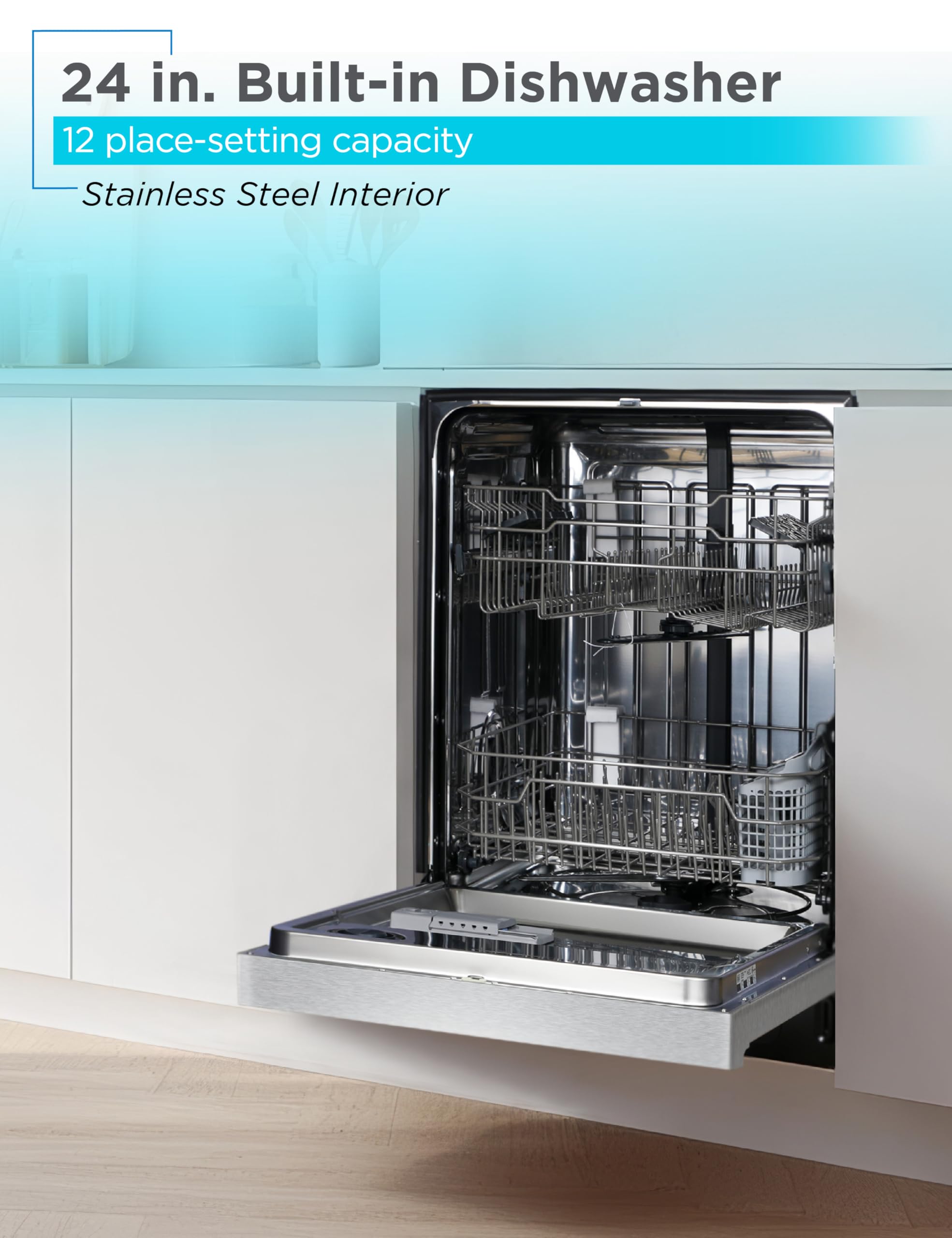 Spacious Capacity: Our built in dishwasher offers a 12-place setting capacity with a tall tub design, ideal for accommodating larger loads. Ensures efficient washing for all your dishware with ease