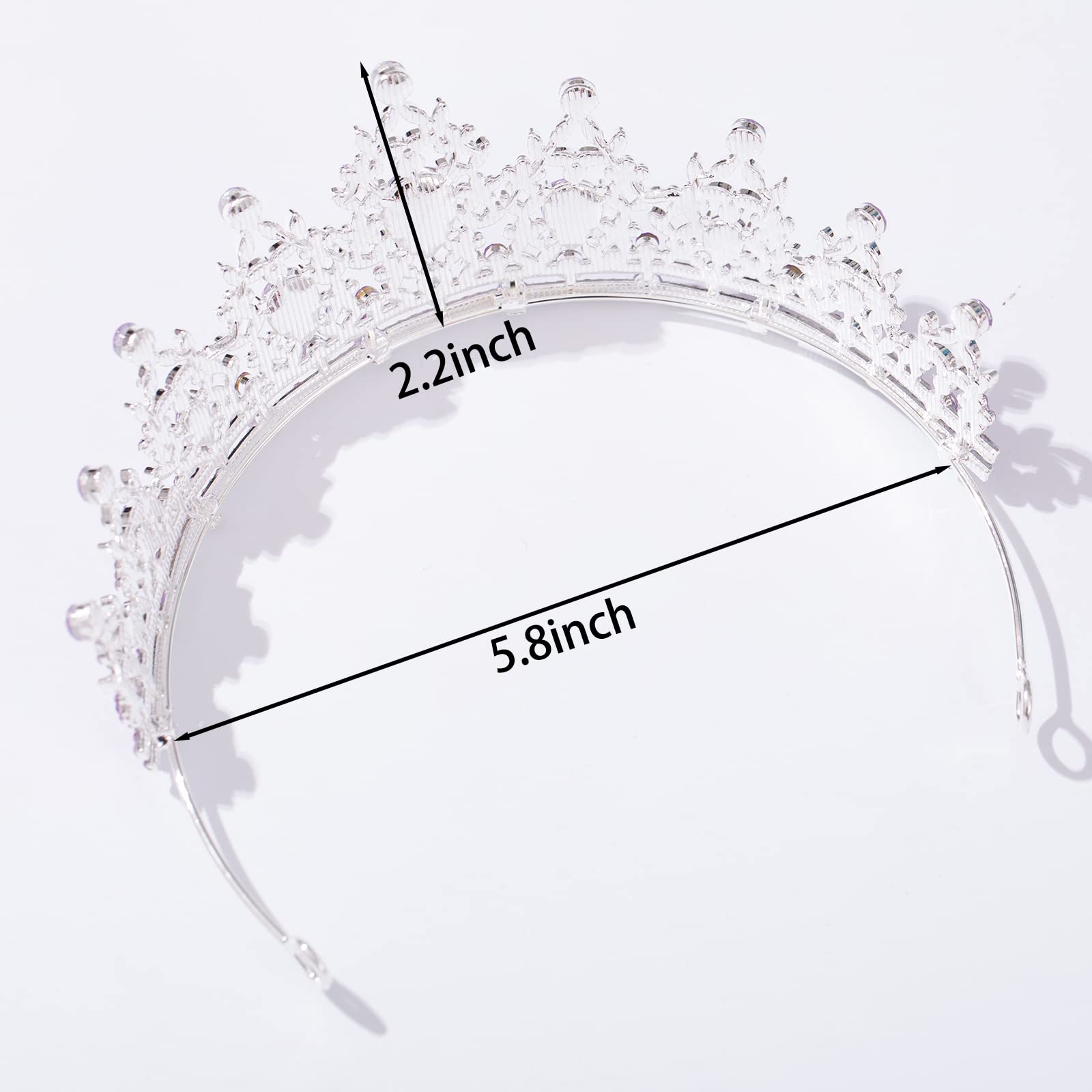 Color-- Silver, Color retention, no fading. Size-- 5.8inch * 2.2inch. Tiara and Crowns Suitable for adult women and girls. Weight is 70g /0.15lb.