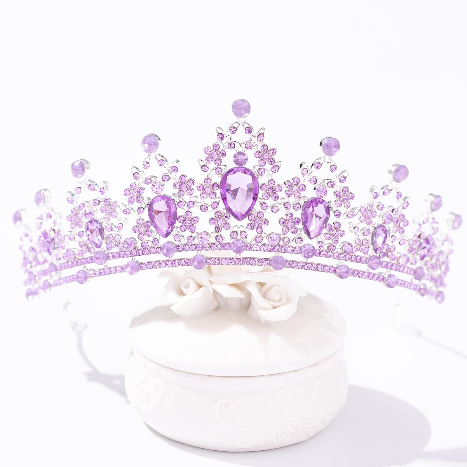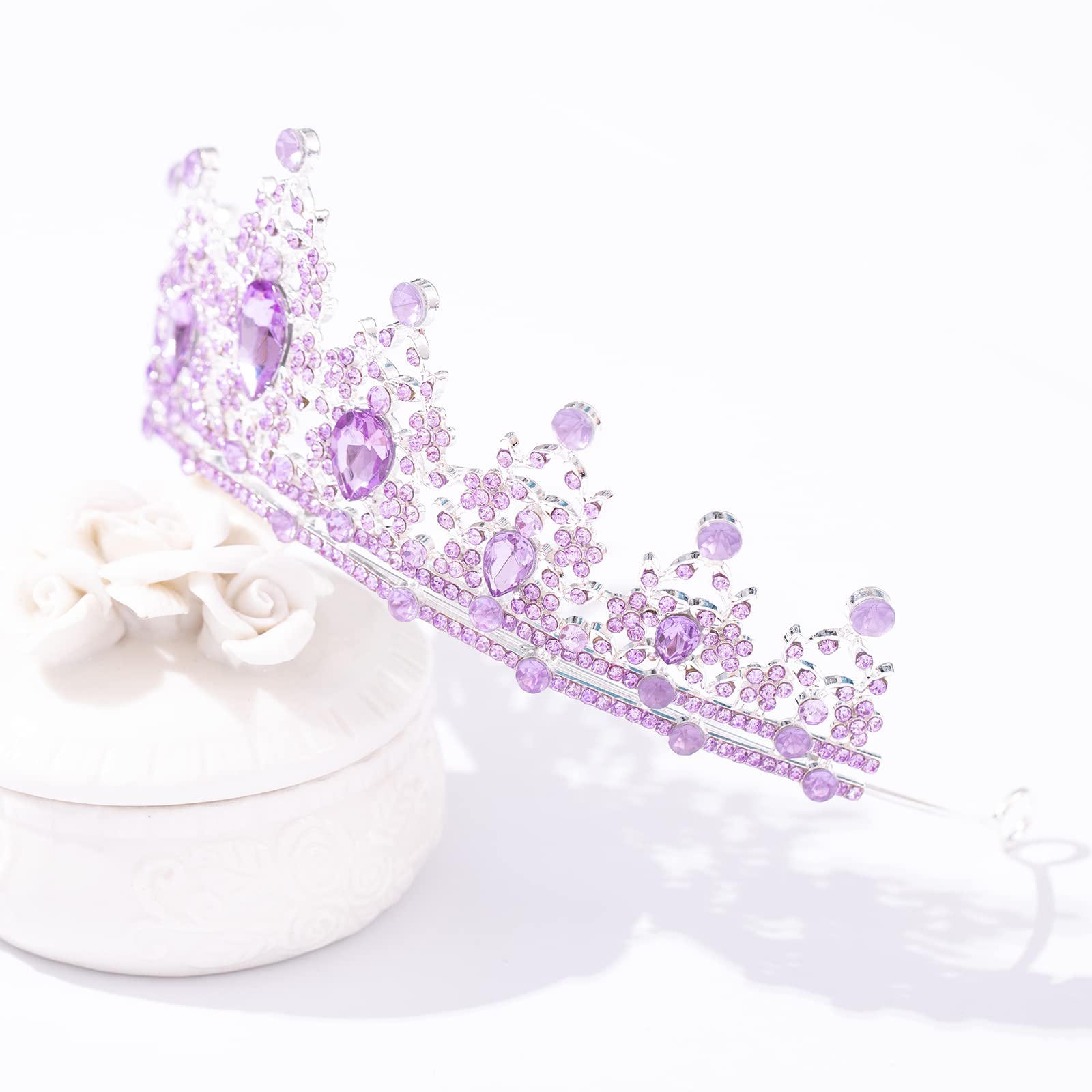 Sturdy Crown: This silver tiara is handmade by durable alloy and rhinestone. Light Purple Crystal Crown is beautiful,well-made and very solid and comfortable to wear, with hard texture for practicality and aesthetics.