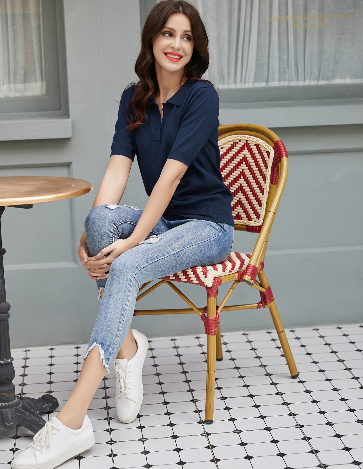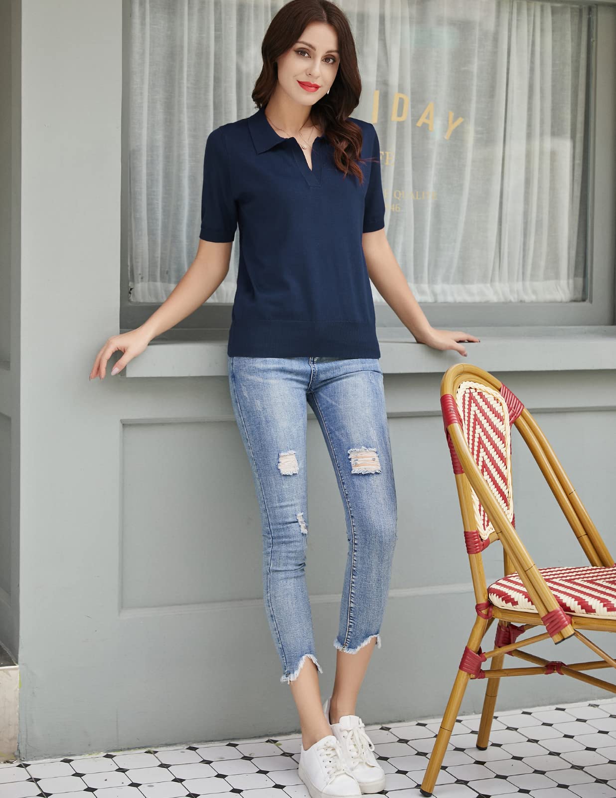 Features: V-neck short-sleeved, loose, casual, ribbed knit pullover. The classic lapel sweater never goes out of style