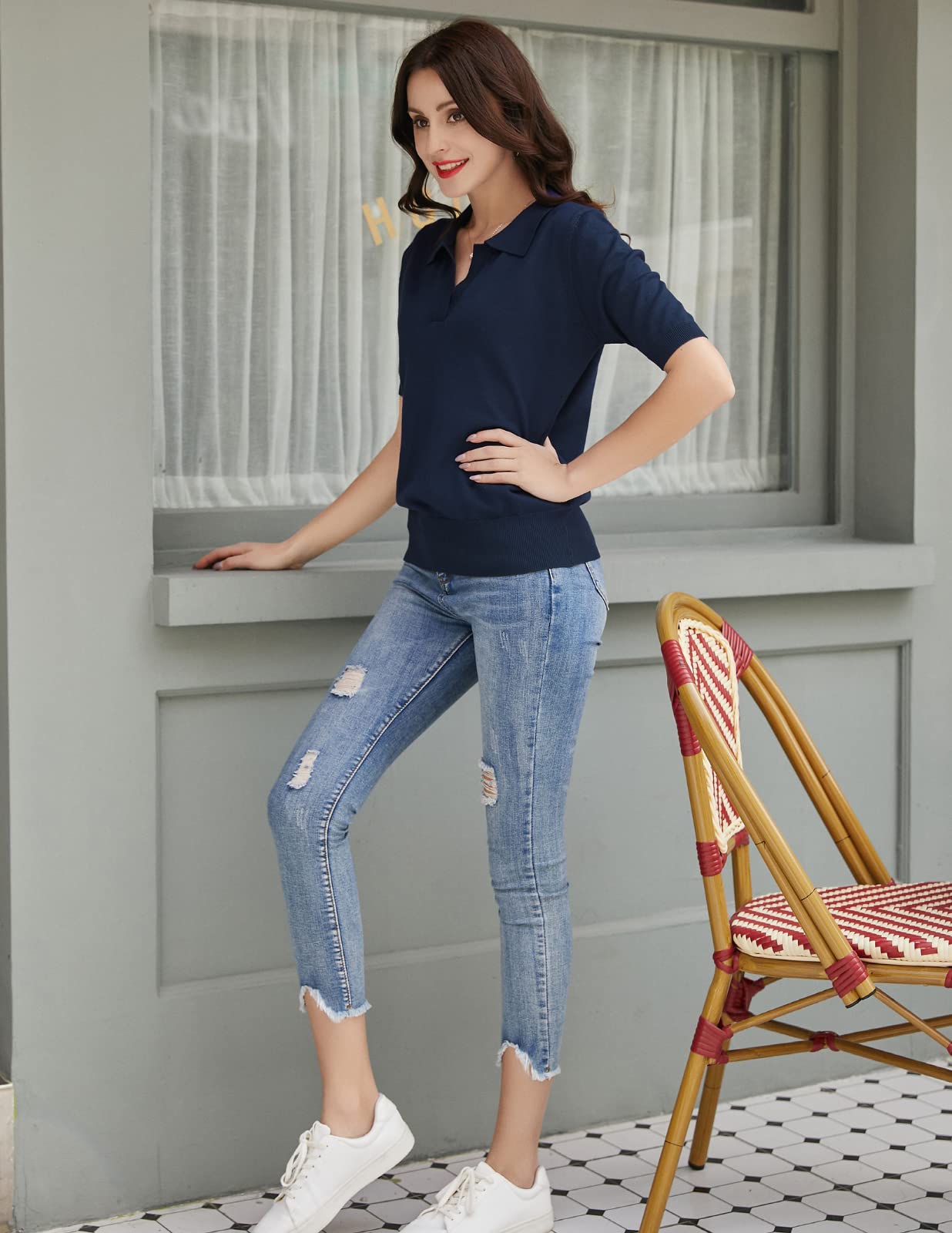 Material: soft, comfortable and stretchy ,this polo sweater is lightweight and breathable