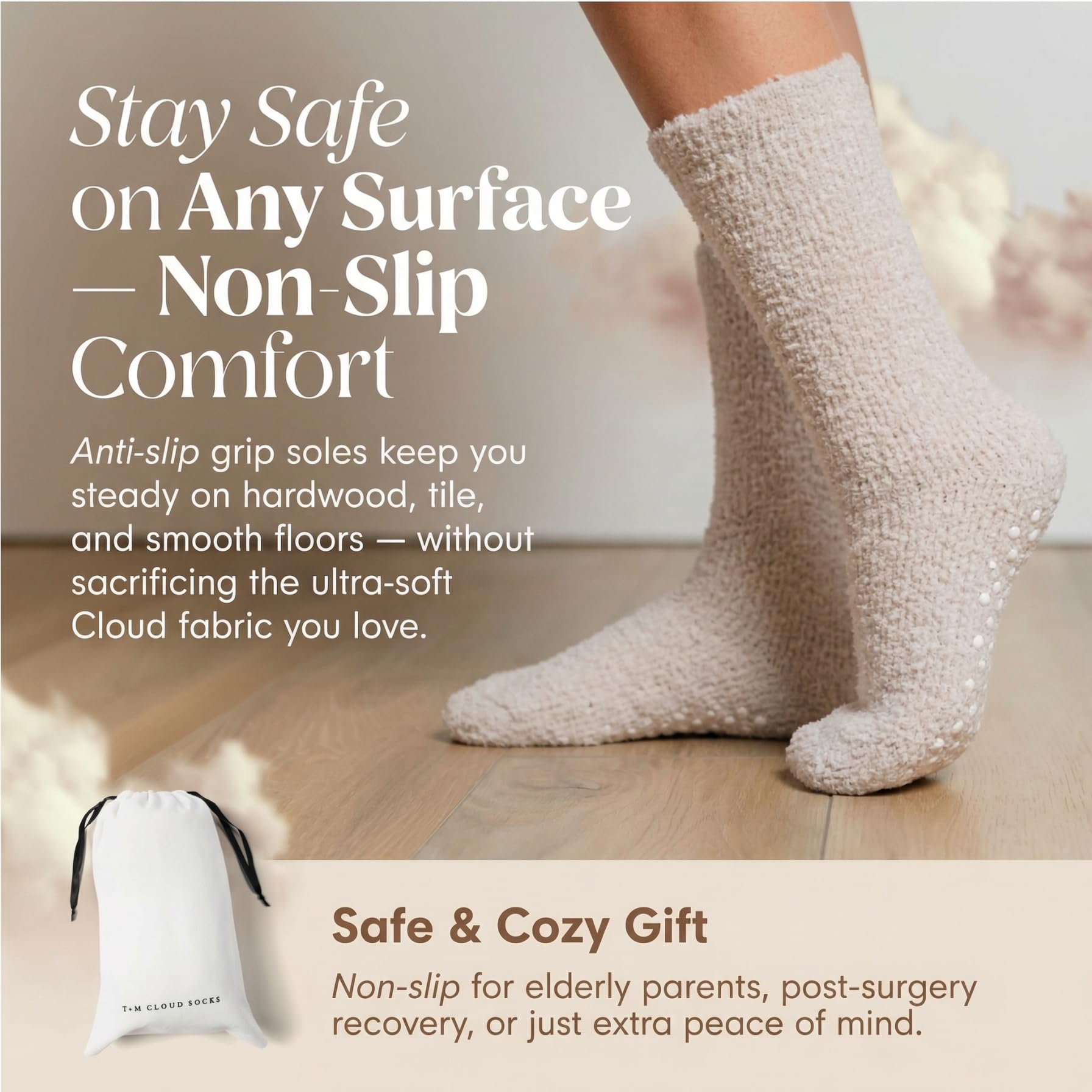Sleep Longer, Deeper, and Better: Embrace restful nights with Cloud Socks. Research indicates that wearing sleep socks to bed not only helps in quicker sleep onset but also promotes longer and more restful sleep, resulting in a refreshed and revitalized morning.