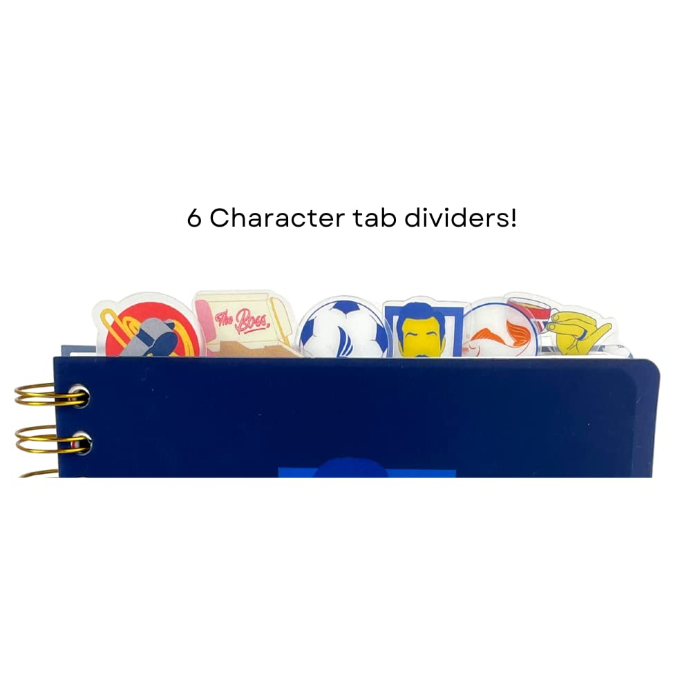 VINYL COVER WITH 6 SEPARATORS - The protective vinyl cover is easy to wipe clean, and the themed separators stick up from the top for easy flipping. Each section divider is colorfully illustrated with sayings and icons from the Ted Lasso TV series.