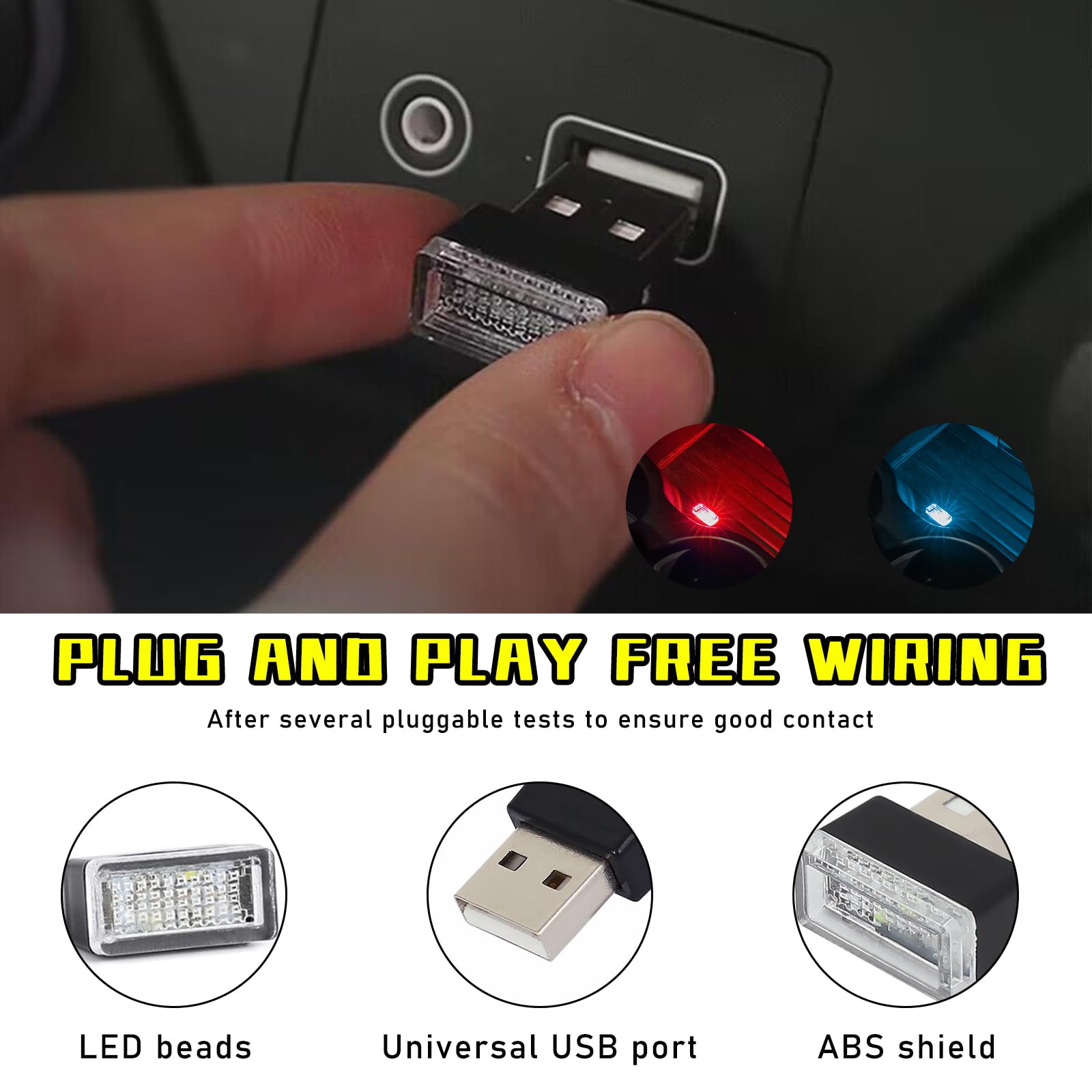 【Durable & Environmentally Friendly】: Engery saving, environmental friendly, saving space, used for USB port dustproof, lighting but not dazzling and eye protection make it duriable. With the high quality LED chip, the USB-LED car interior atmosphere light has a very low power consumption. So it will not add burden to your car battery and you can trust that buying it is the right thing to do.