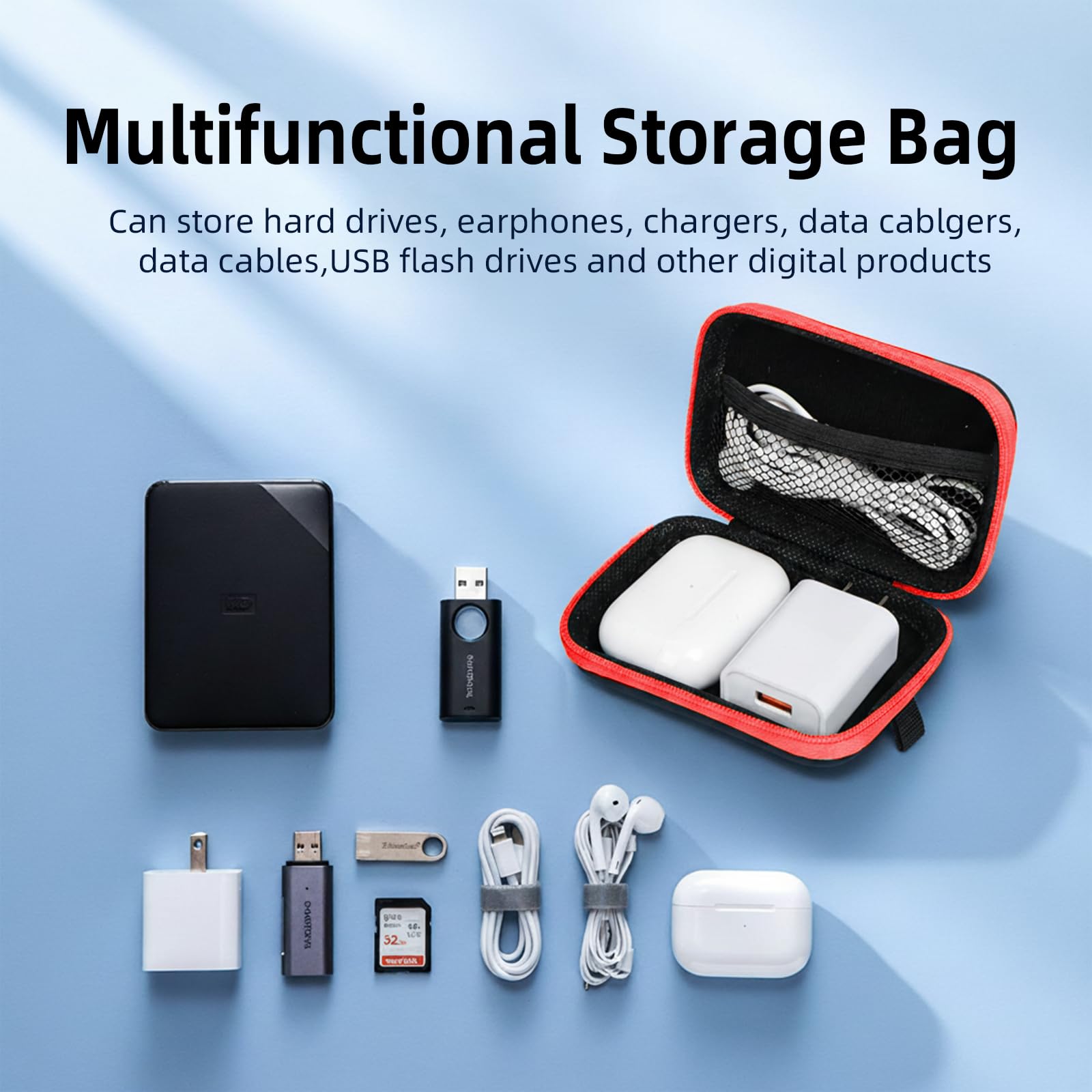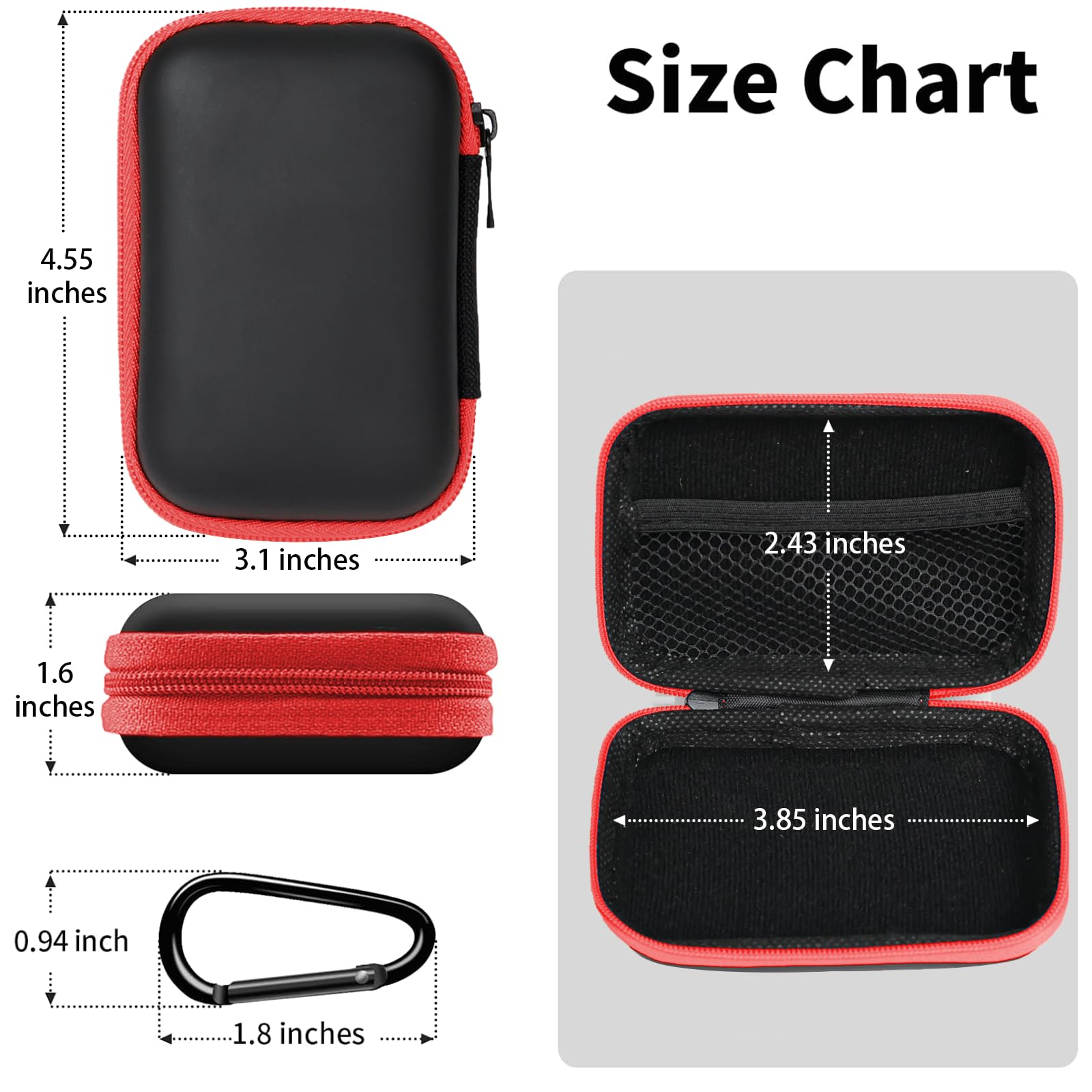 Earbud Case Portable EVA Storage Bag Cell Phone Accessories Organizer with Carabiner for Wired/Wireless Earphone, Earbud, Earpieces, SD Memory Card, Camera Chips, Tech Pouch
