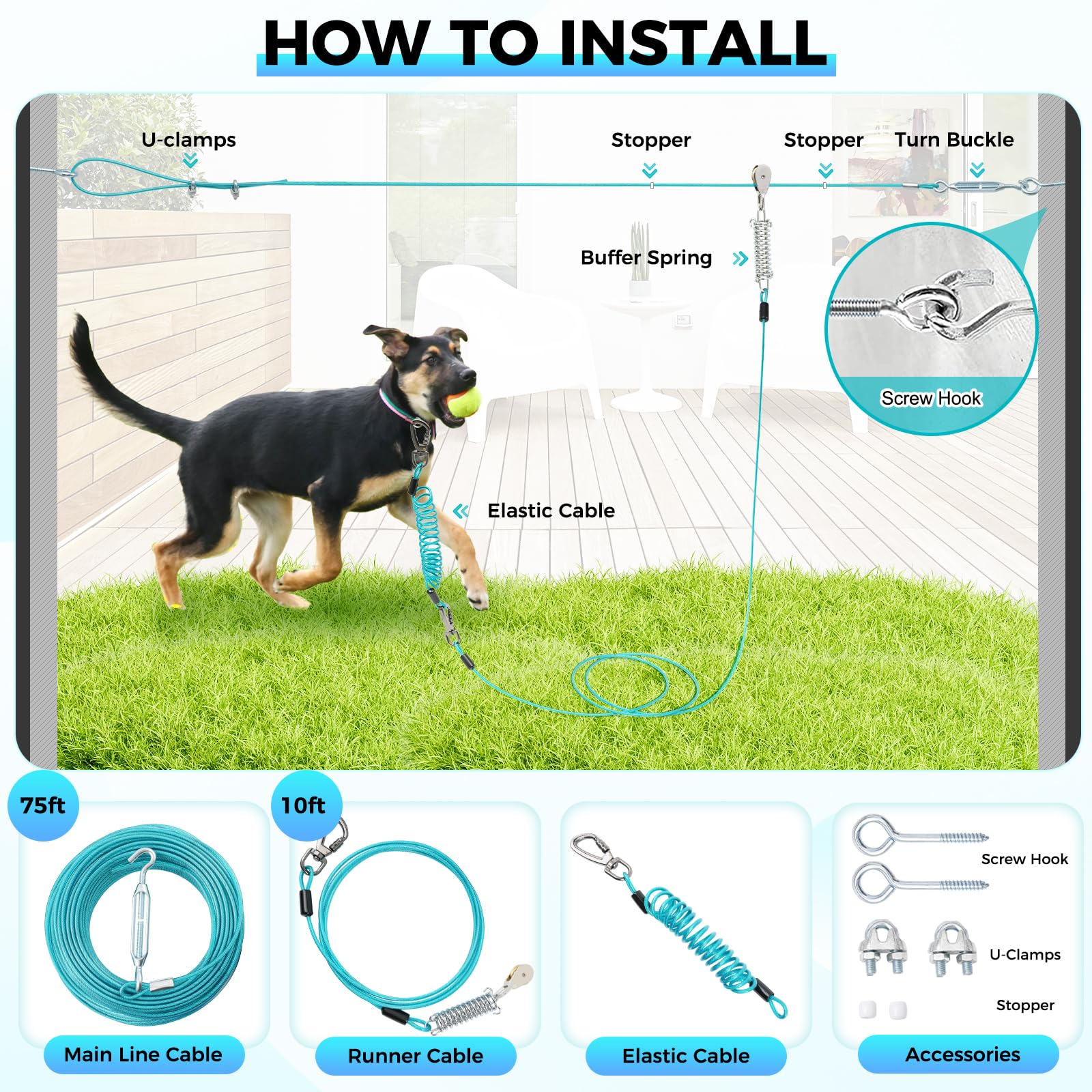 Easy Installation with Complete Kit: This dog runner is easy to install with all the necessary components and a detailed instruction manual included. You’ll have it set up in minutes, so your dog can start enjoying safe outdoor adventures right away