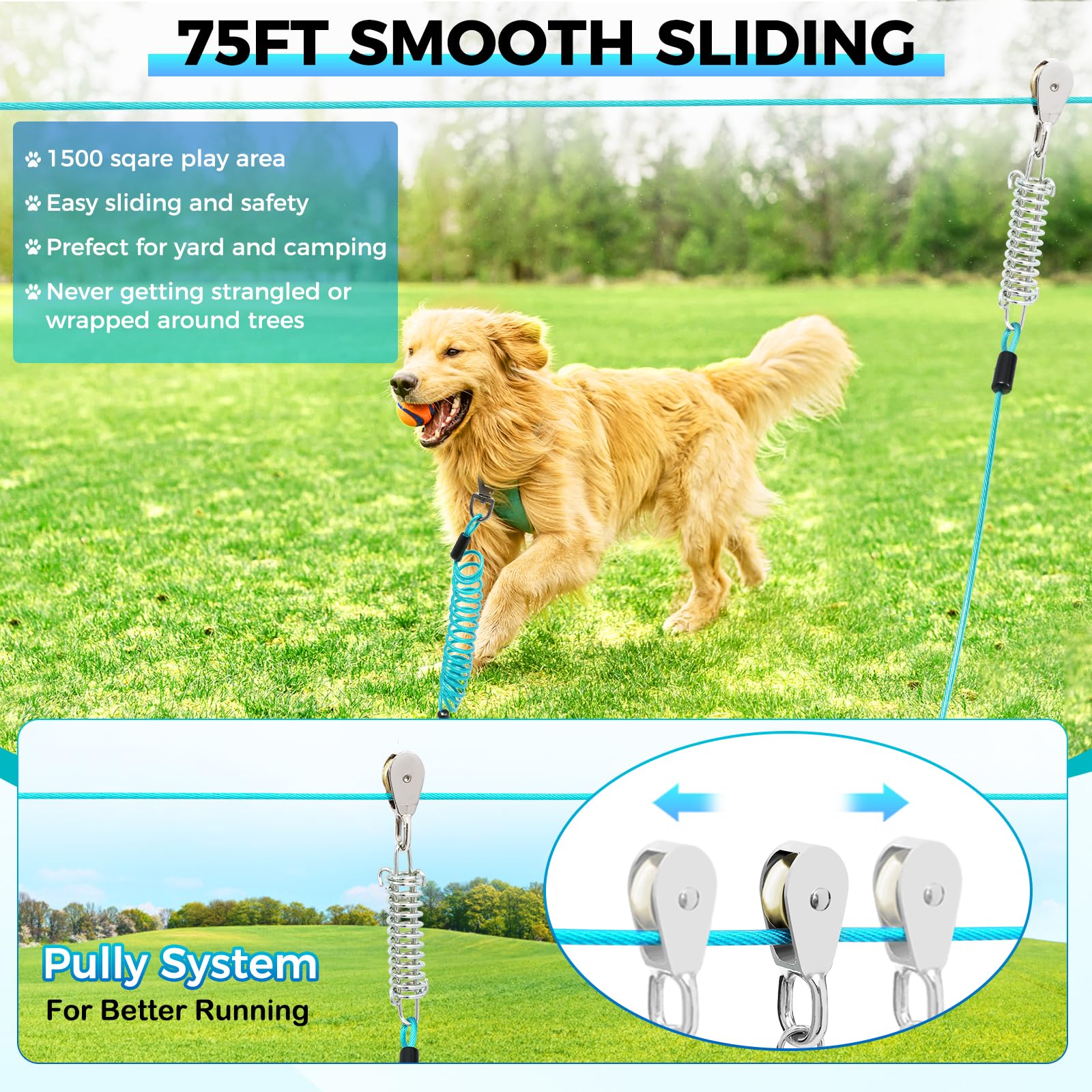 Swivel Pulley for More Space: The integrated swivel pulley allows for more freedom of movement, providing your dog with a larger area to roam while preventing tangling. This feature ensures smoother, safer playtime in open spaces