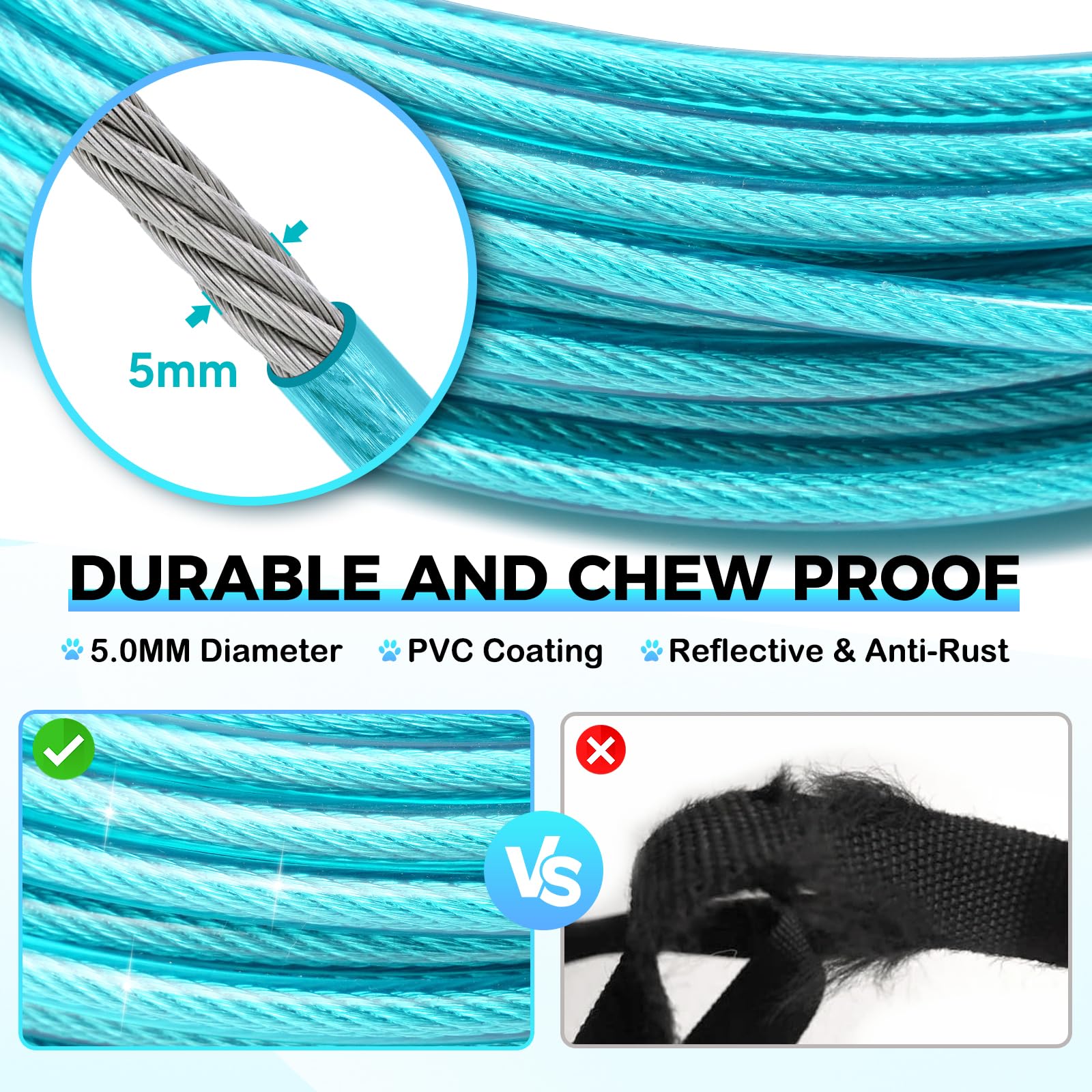 Anti-Bite Steel Cable Durability: The 5mm thick steel wire is designed to withstand the toughest chewers. Unlike nylon leashes, which can easily be chewed through, this steel cable is resistant to biting and ensures long-lasting durability for active dogs.