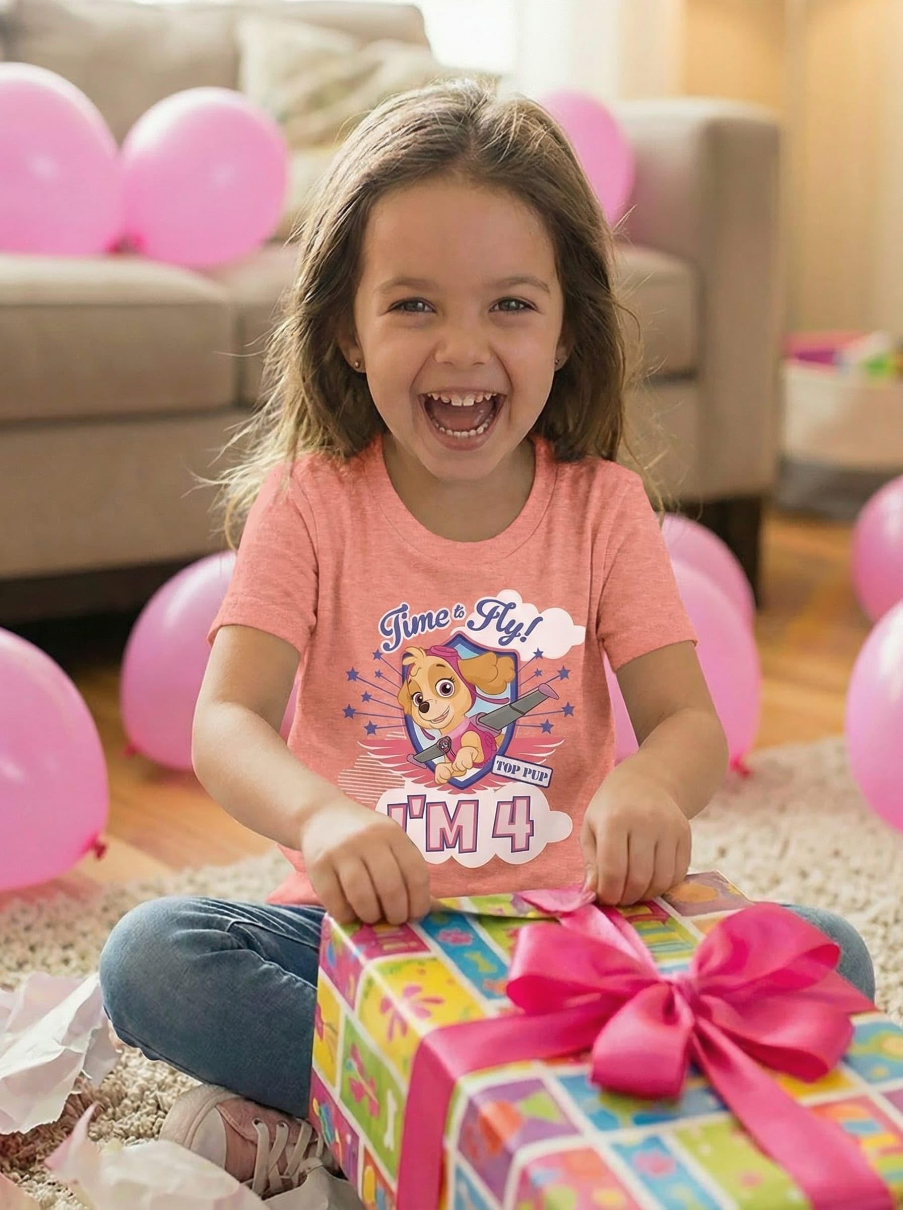 Description Let your birthday girl soar into her special day with this adorable Skye Paw Patrol Birthday Shirt! Designed for fans of everyone's favorite flying pup, this tee is a perfect choice for 4th birthday parties, preschool celebrations, or any pup-themed adventure. Made from soft, breathable cotton, it's gentle on sensitive skin and comfy enough for all-day birthday fun--from blowing out candles to jumping into party games. The vibrant Skye design pops in photos and holds up wash after wash, making it a favorite long after the party's over. Whether you're shopping for your own little one or surprising a Paw Patrol-loving niece or granddaughter, this shirt makes a thoughtful gift for any 4 year old girl. Easy to pair with tutus, jeans, or leggings, it's an instant birthday outfit that brings smiles and tail wags.