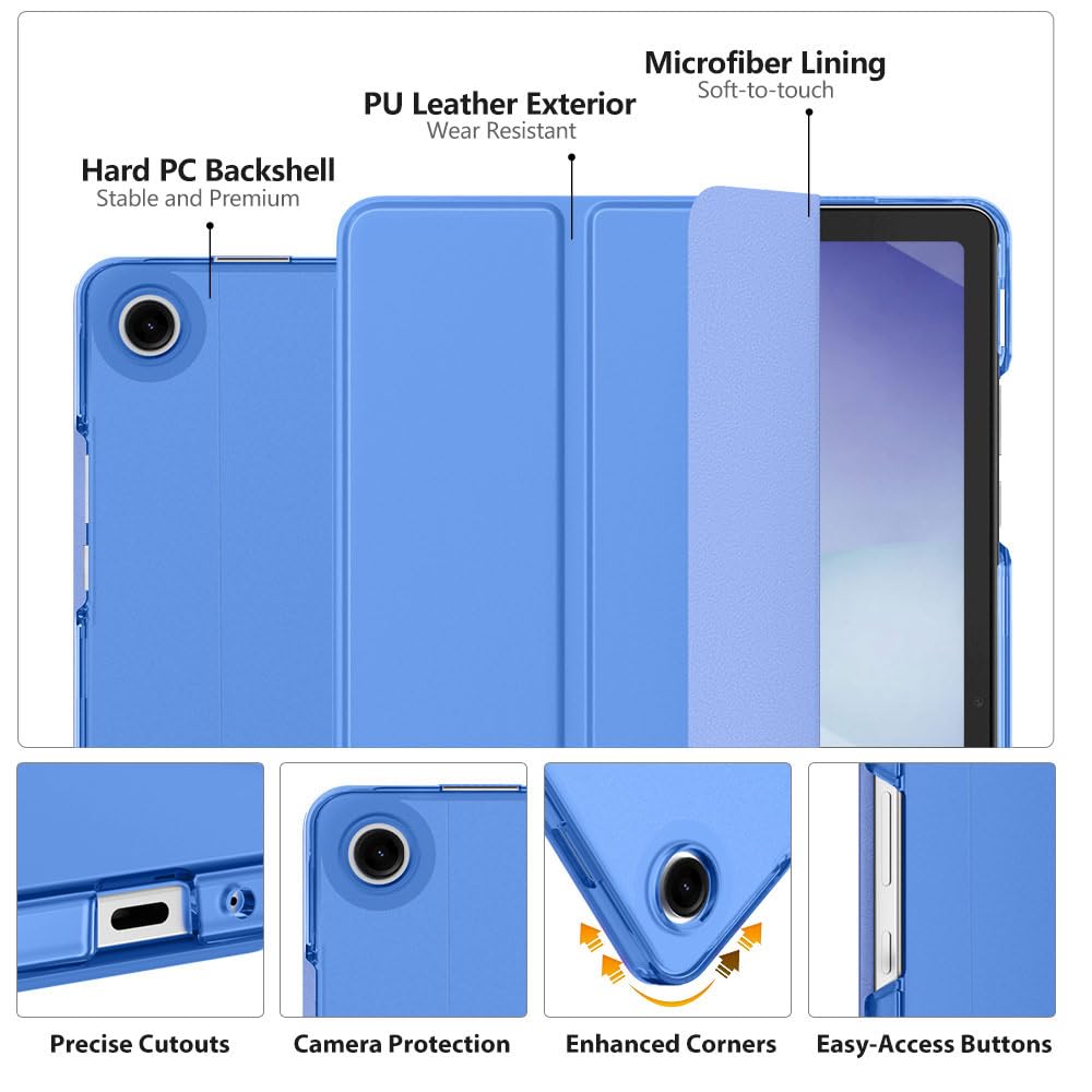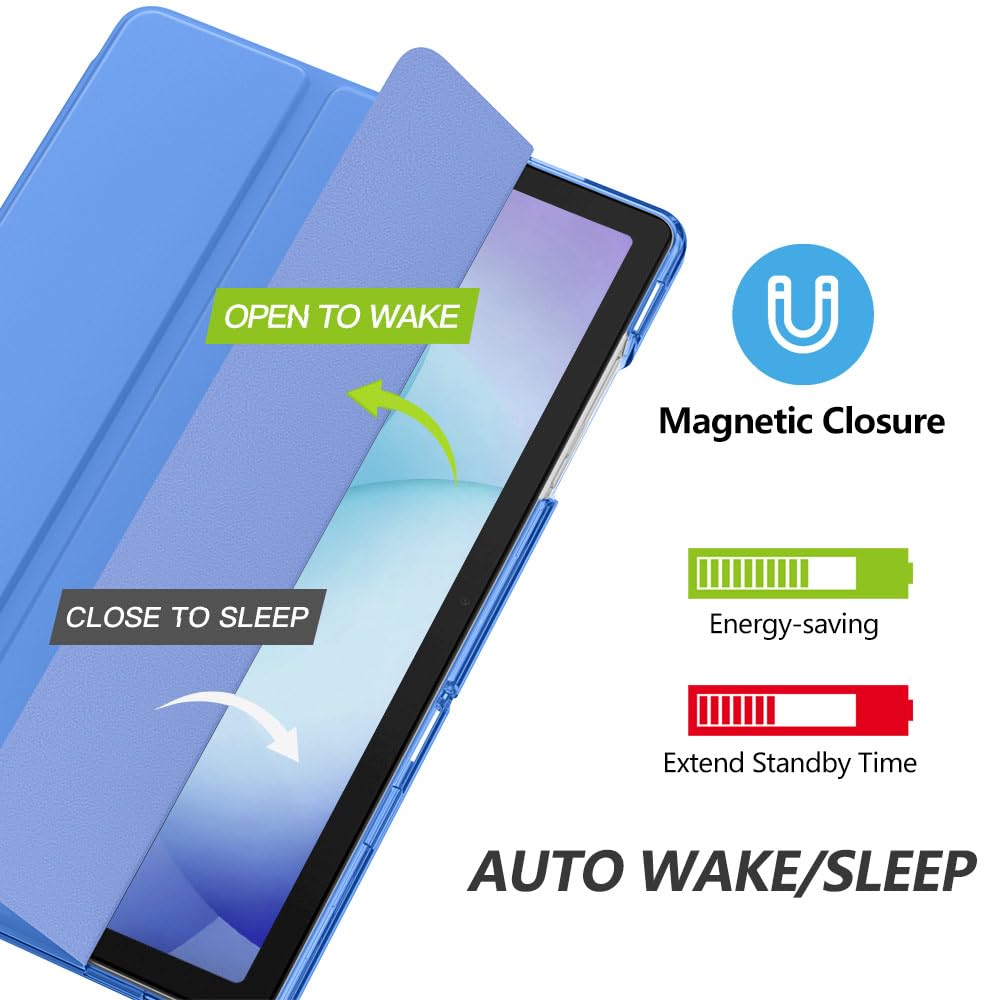 Auto Wake/Sleep: Built-in magnetic strip, automatically wakes or puts your tablet to sleep when the lid is opened and closed. This Galaxy Tab A11+/A9+ Case Protects and extends battery life