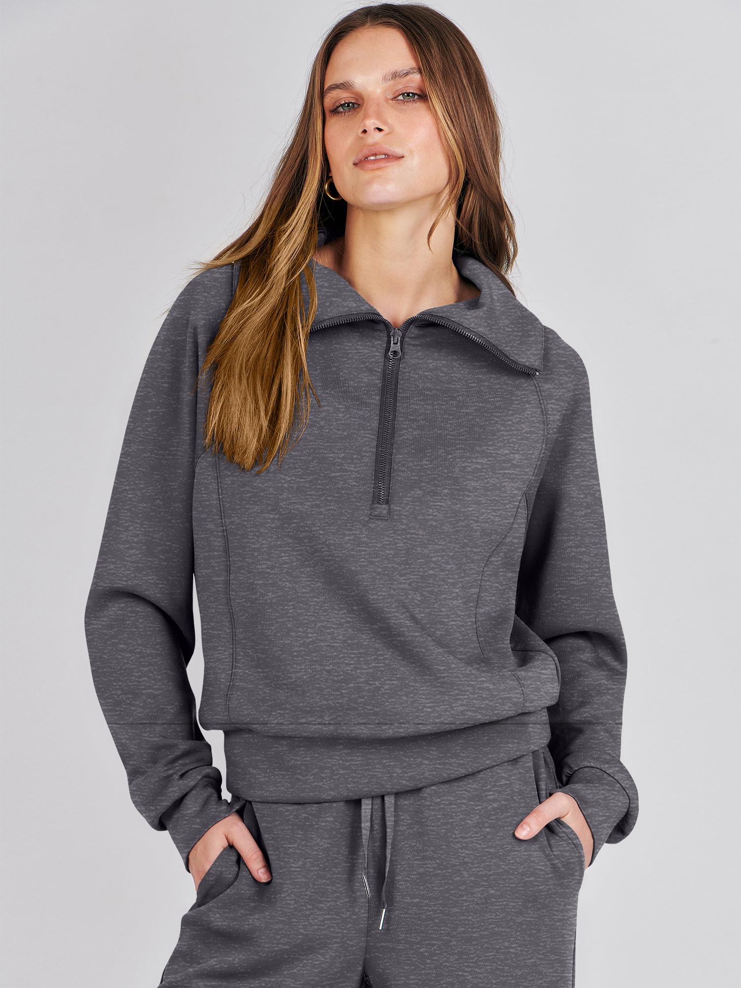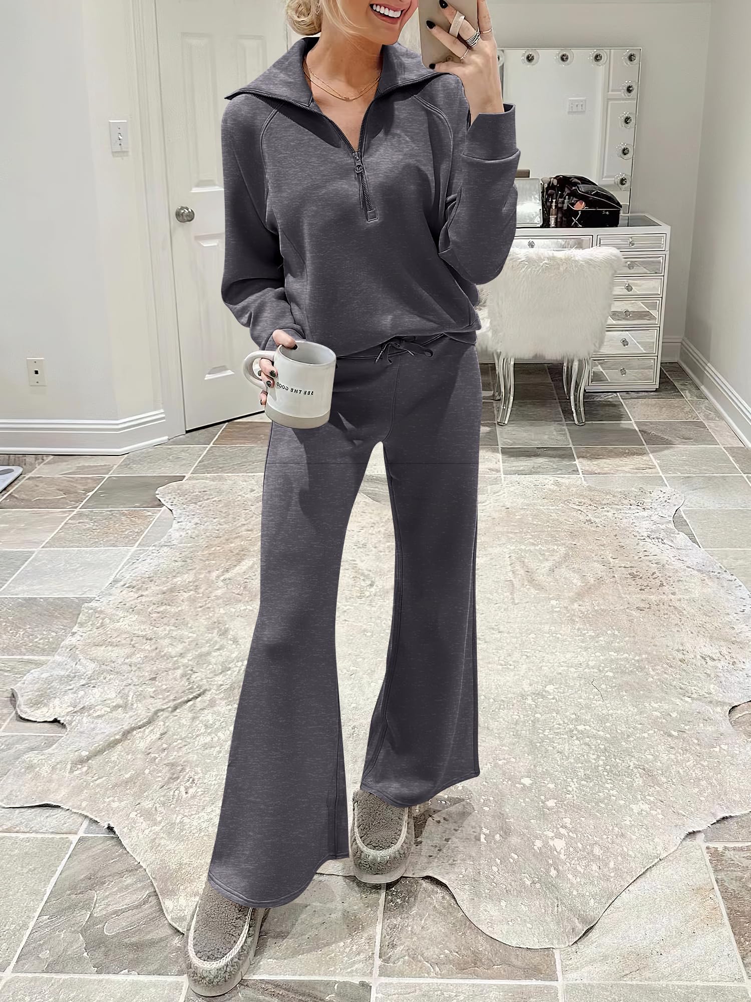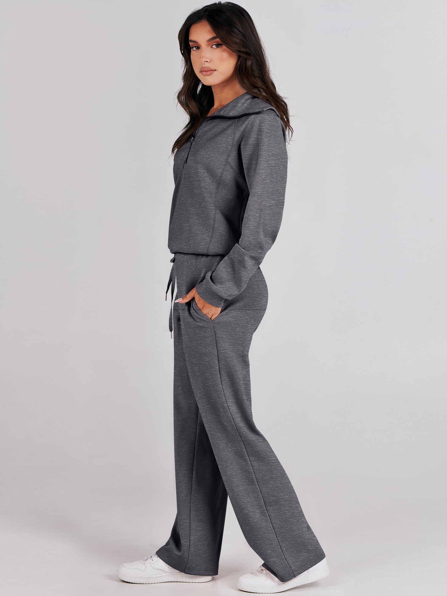 Features - This Sweatsuit Set featured half zip long sleeve oversized sweatshirt & high waist drawstring wide leg sweatpant for a 2 piece tracksuit set. Matching set sweatpants 2 piece sweatsuit are great for daily life, gym, sport, running, active, lounge, travel, beach, fitness and home.