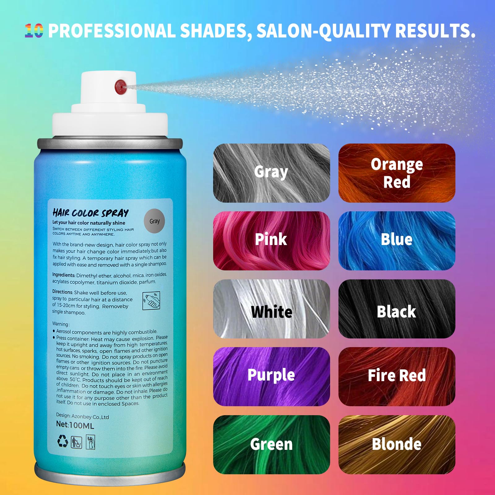Vibrant Colors: Choose from 50+ bold shades like Purple, Pink, Silver & Blonde. This temporary hair color spray lets you experiment or cover grays for Halloween, parties, or daily fun. Express yourself in seconds!