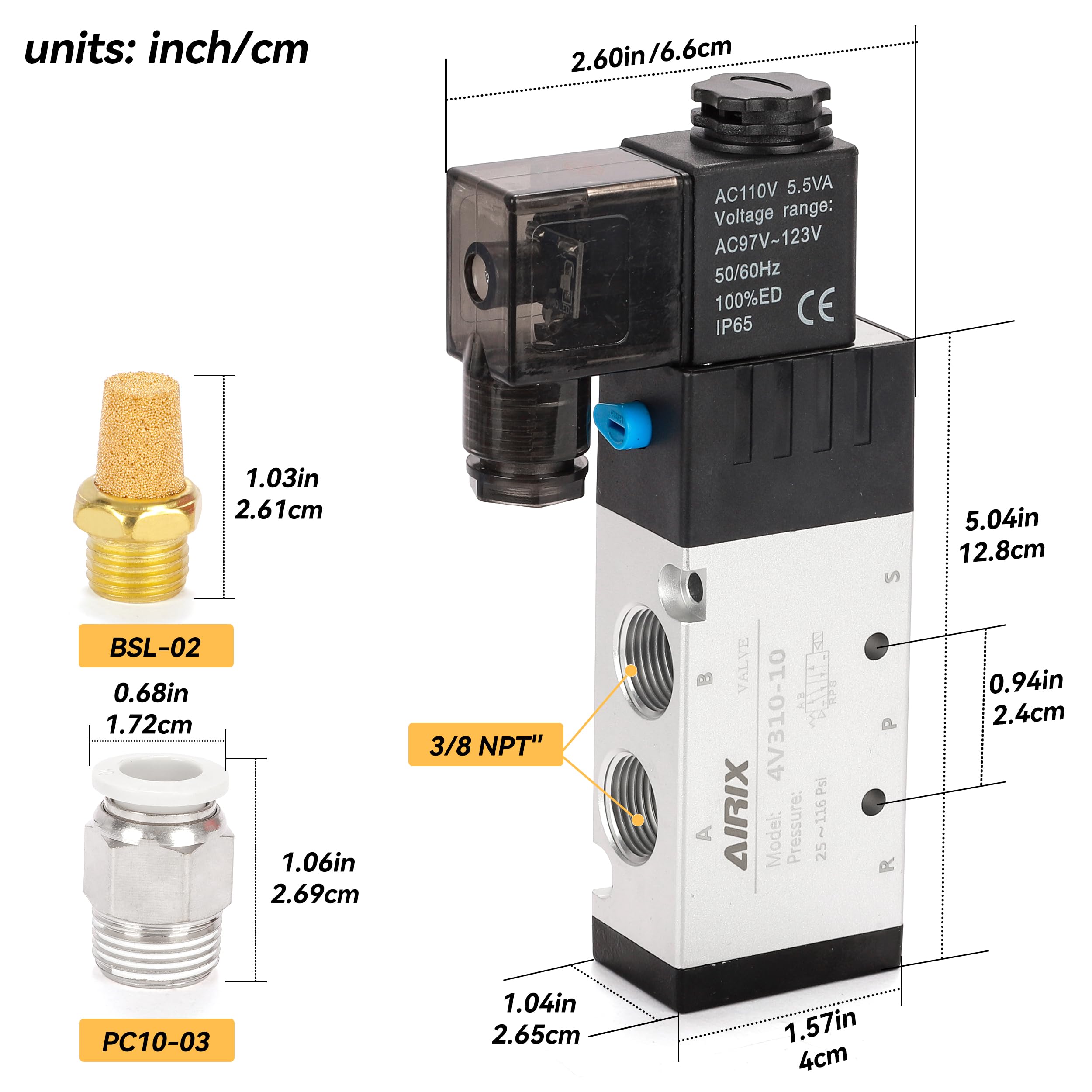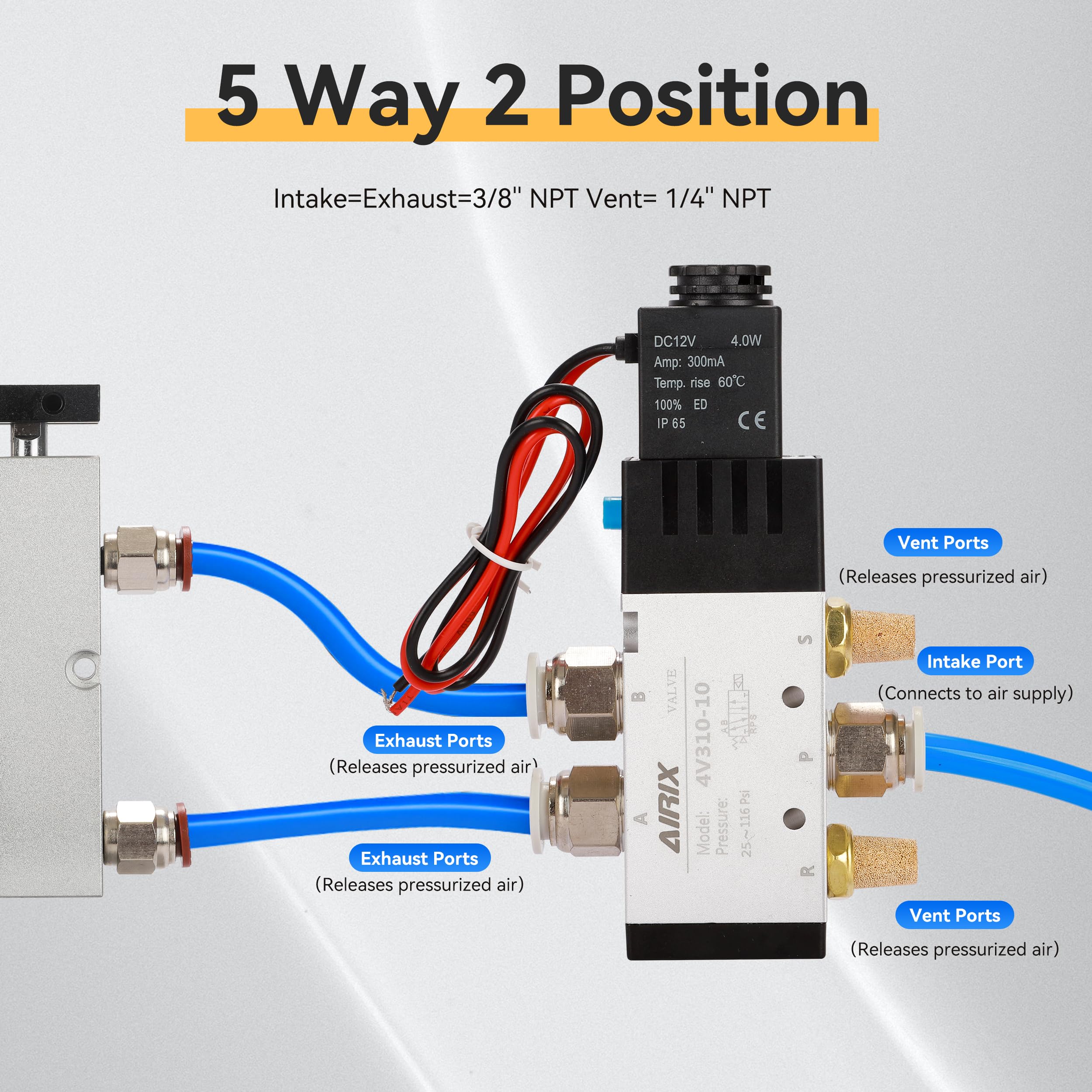 🔹 【Precision Air Control – 4V310-10 Valve】 Designed for pneumatic and automation systems, the AIRIX 4V310-10 solenoid valve offers reliable 2-position 5-way flow control. Ideal for regulating directional airflow in industrial applications with high repeatability.