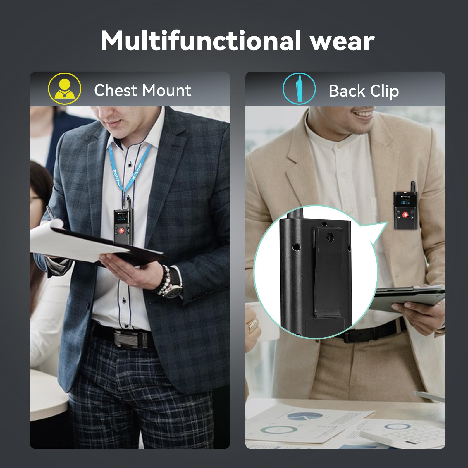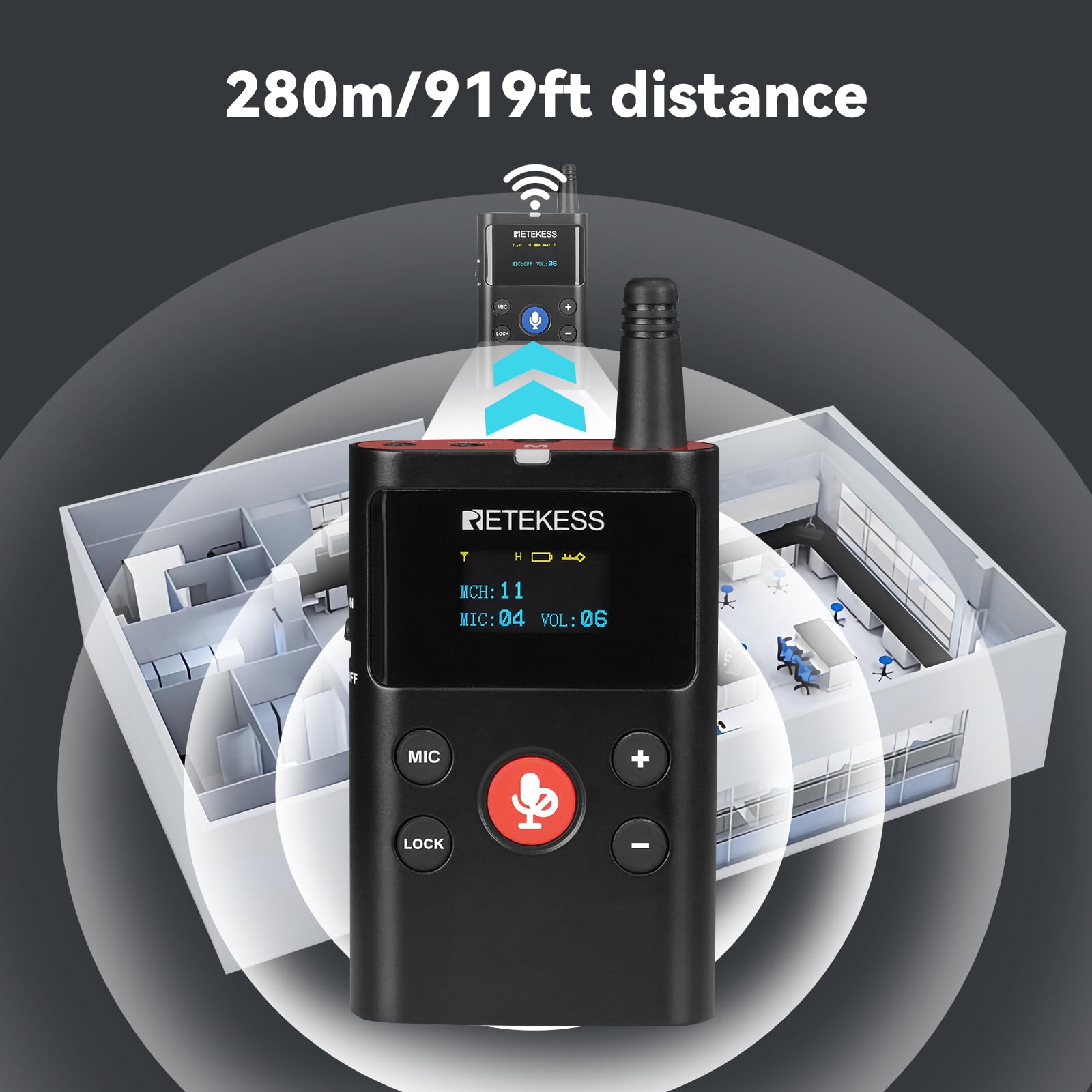 Long communication distance; Retekess TT126 two-way tour guide headsets have the ability to transmit and receive signals over a 280m/919ft distance outdoors