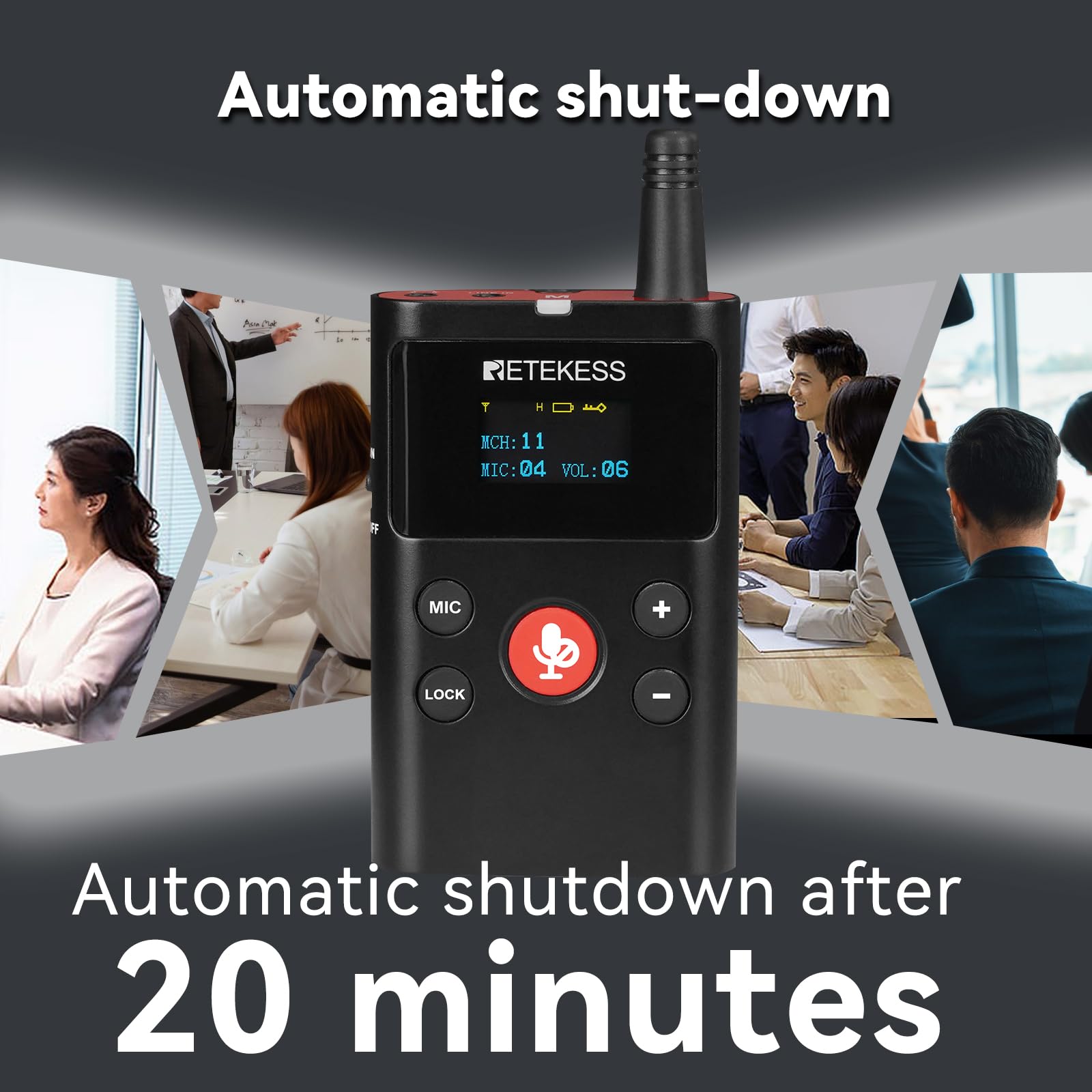 Power saving protection; when Retekess TT126 microphone cannot receive the signal; it has the ability to power down automatically to save power