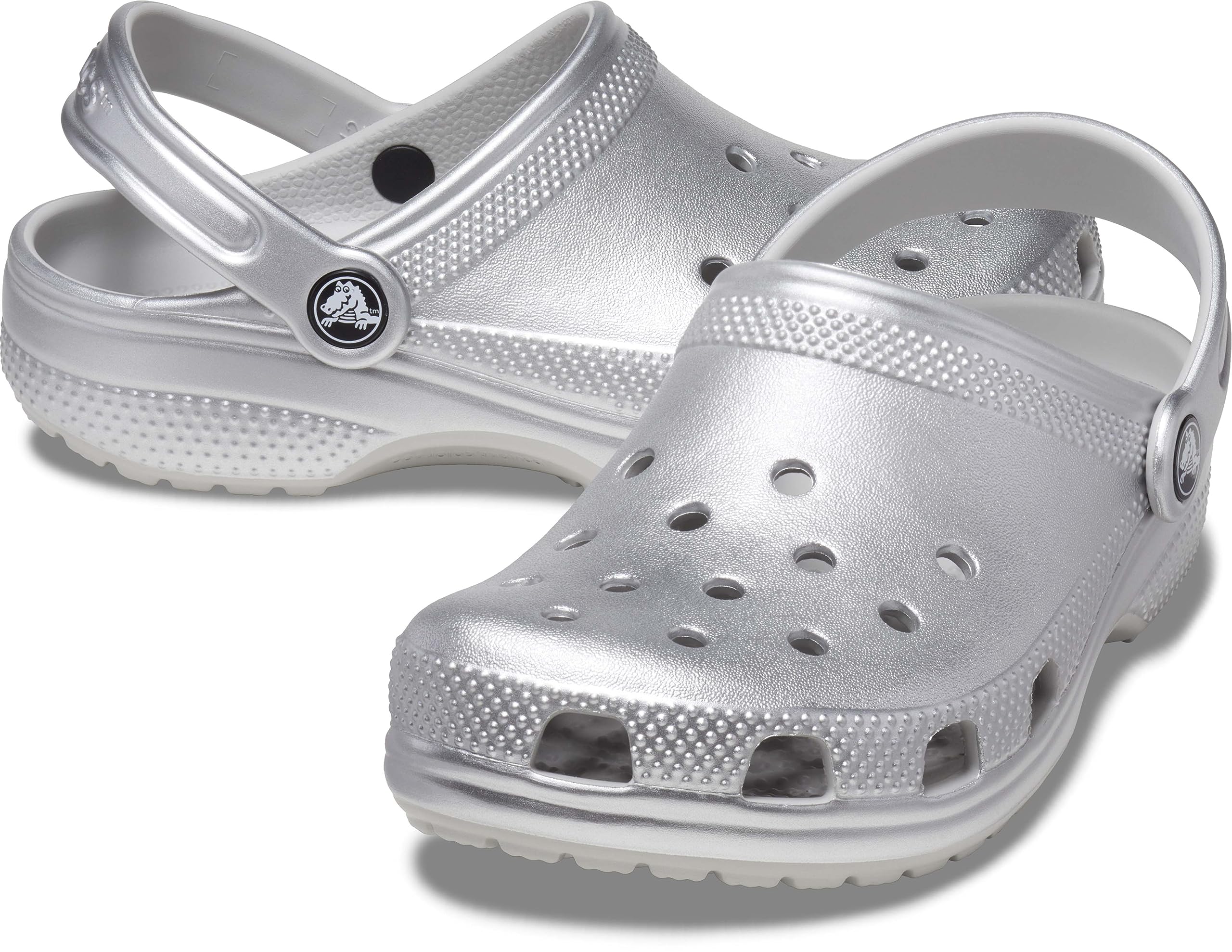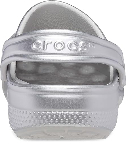 SPARKLING STYLE: The Croc Kids Classic glitter clog is a fashionable choice for your little one, featuring an allover glitter detail that adds a touch of sparkle to their outfit. The glitter design not only looks chic but also adds a playful and eye-catching element to their look. Whether they're attending parties, family gatherings, or simply enjoying everyday adventures, these clogs ensure they stand out in style.