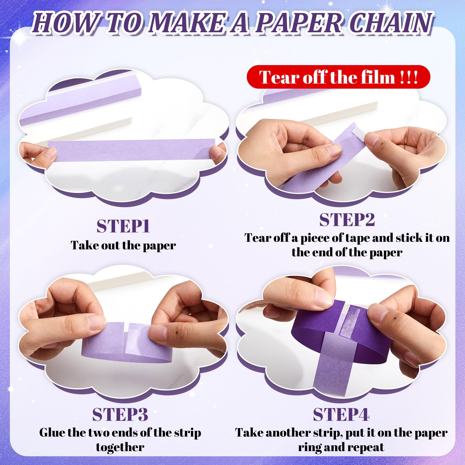 Simple to Operate: using these colorful paper chain strips is very easy, you just need to stick the 2 ends of the paper together with the attached tape, match the color as you like, ring by ring, and you will get an exquisite and personalized handicraft, without complex or dangerous procedures